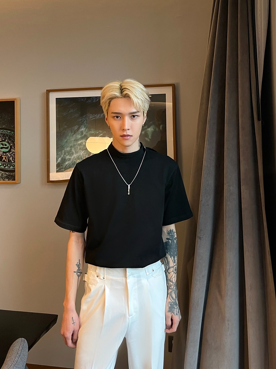被T恤覆盖的夏天,也可以来件不一样的短袖哦,这款T恤是立领的,搭配领口的纽扣,打破单调充满了趣味呢。