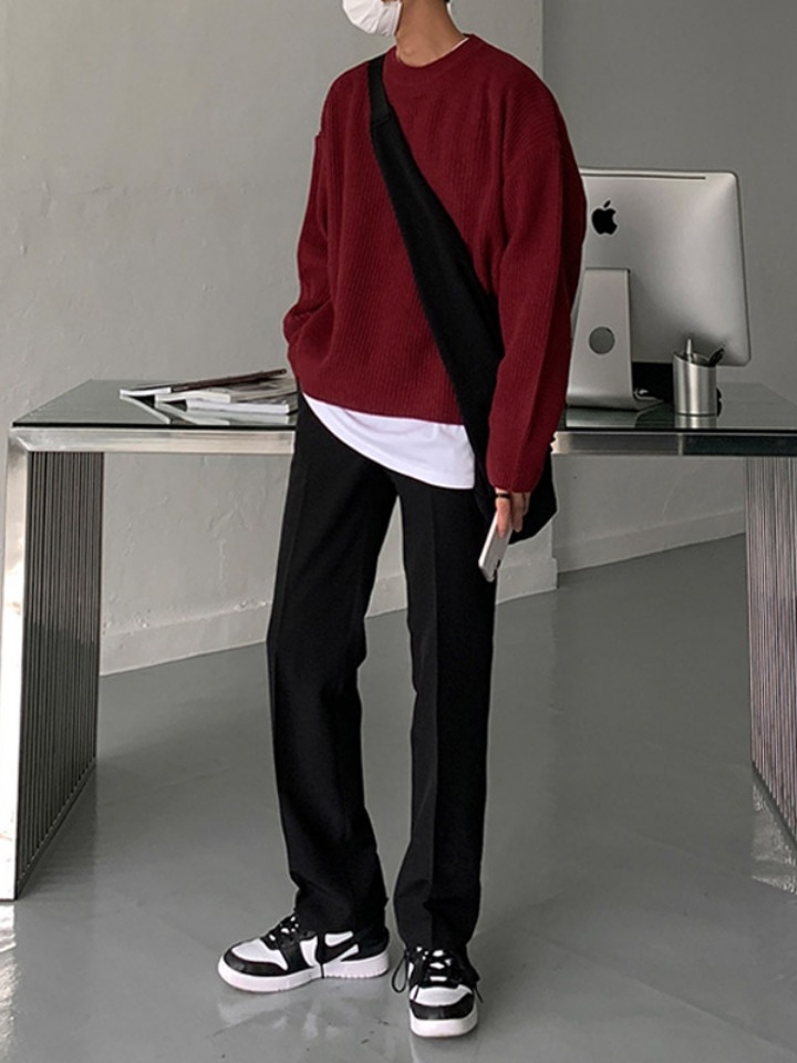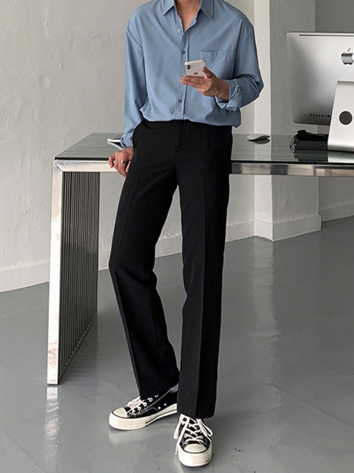 西装裤的版型打造出休闲的OL风格,高腰拉长双腿比例,宽松版型有修饰腿型的效果,整体简约时尚,是非常百搭的单品。
