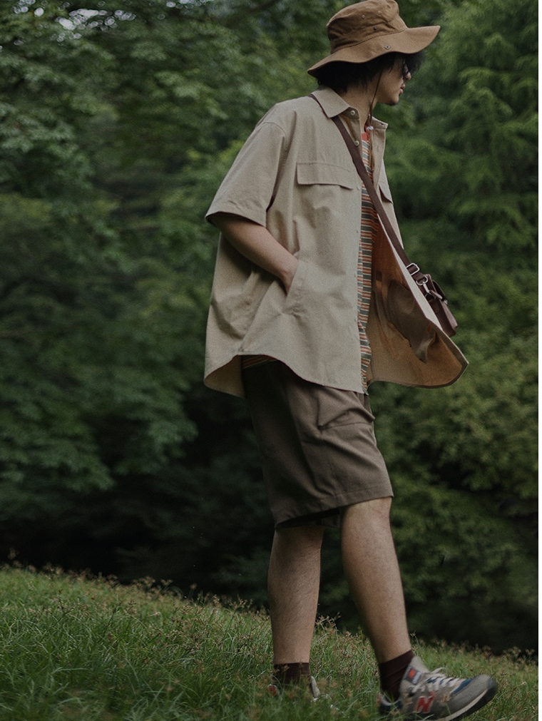 宽松廓形工装短裤, 立体大口袋设计十分个性吸睛,涤纶面料厚度适中,适合夏季日常穿着,低调的色系更多了几分沉稳感。