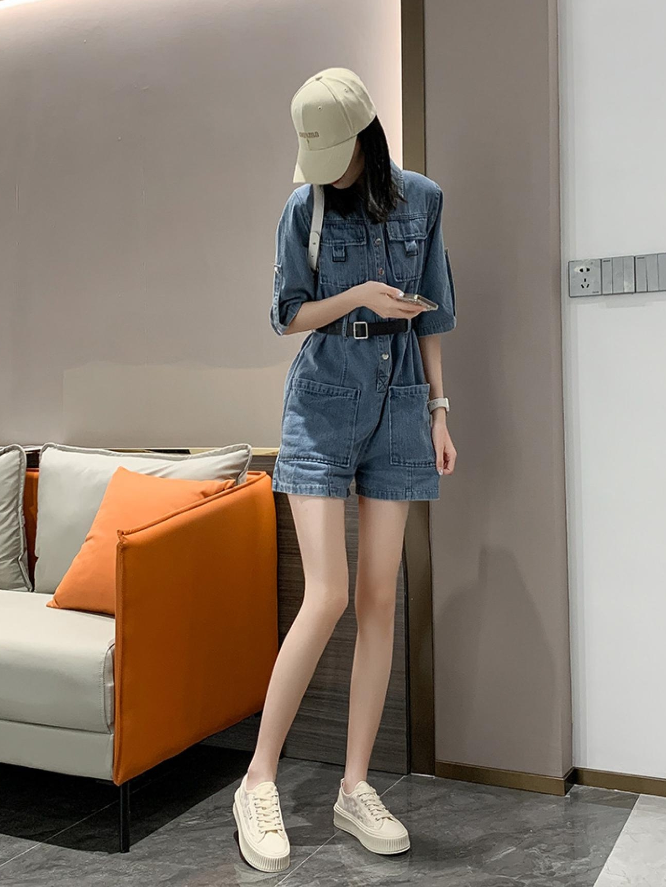 日常出街搭配的话,这一款可以选择一件牛仔感的连体短袖短裤,腰间系上一条皮带,勾勒出腰型,脚上踩着这双帆布鞋,活力少女感立马就出来了。