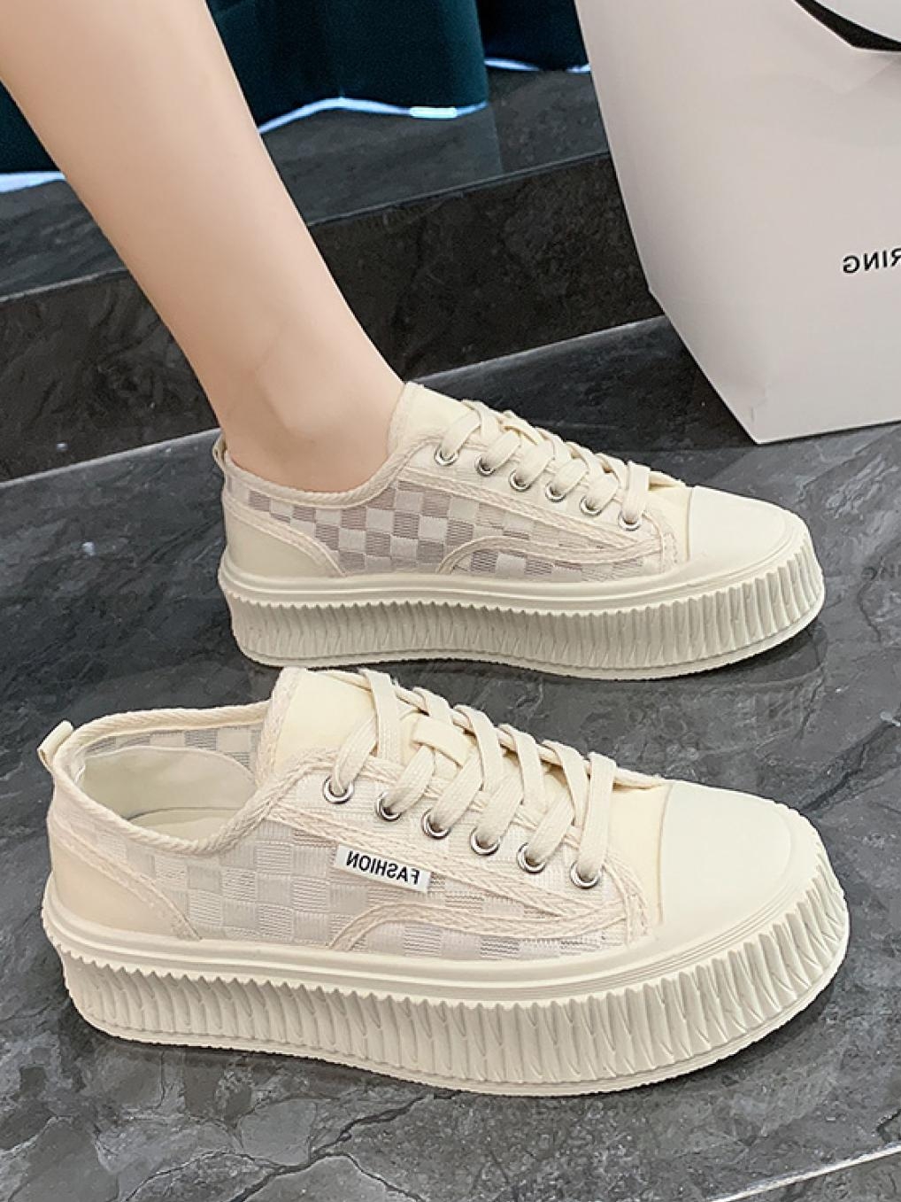 这一款透气感满满的帆布鞋子,圆润的鞋头,在侧边加入皱褶的饼干造型,看上去显得双脚十分的秀气,松糕厚底的款式,穿着轻松拉长了腿部的线条感呢。
