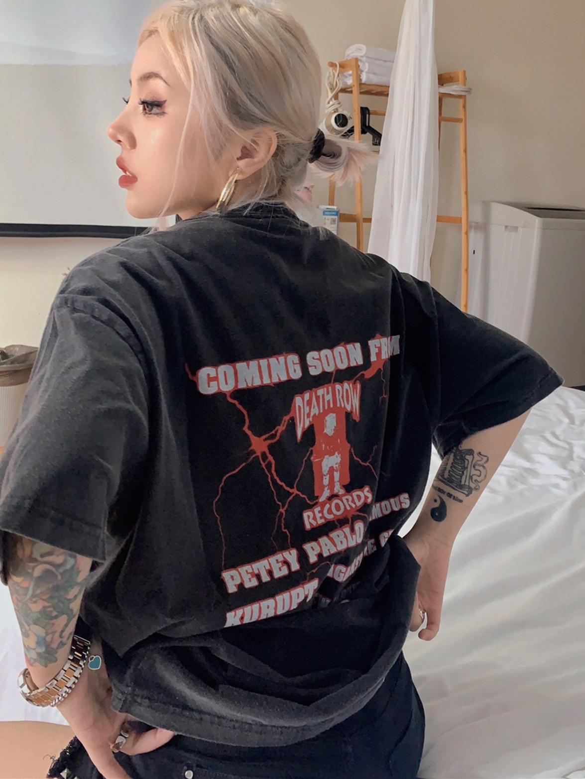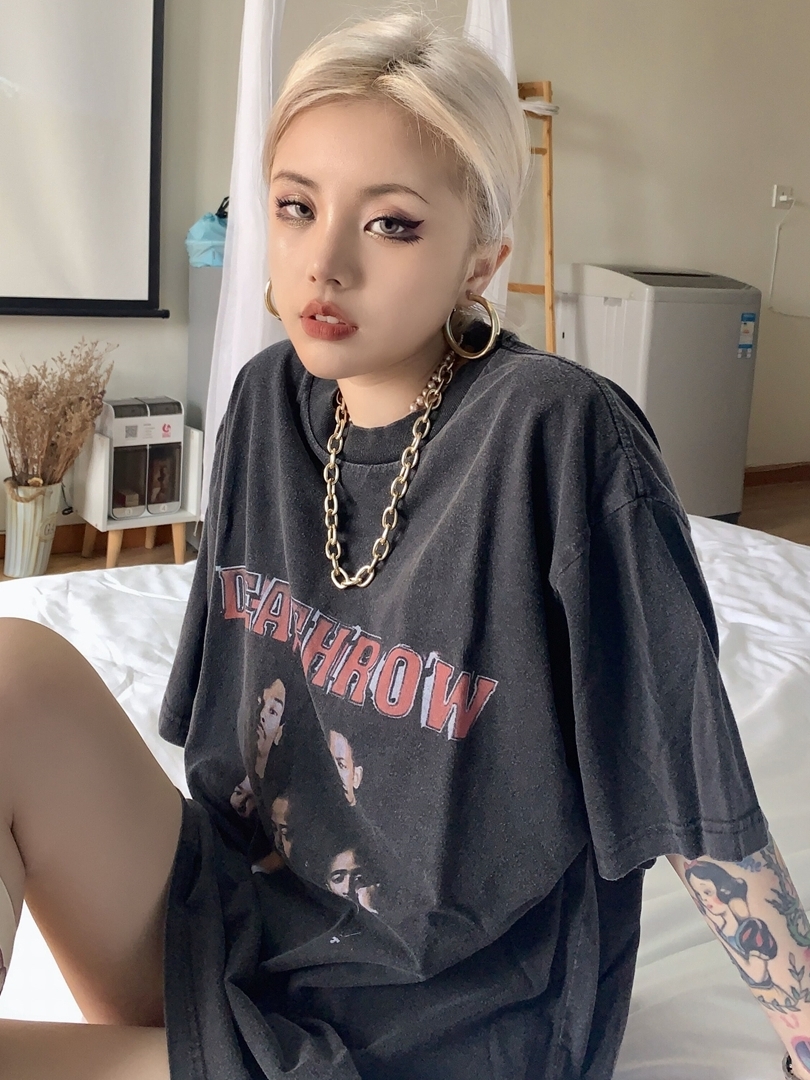 水洗做旧印花复古短袖,T恤整体时尚靓丽同时穿着舒适透气。而且我去聚会的时候穿上这件短袖衬衫周围的同事们都夸我非常漂亮,很显我的气质。