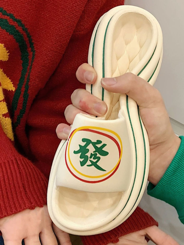 打麻将想胡牌先穿上这双发财拖鞋,哈哈哈太搞怪了,一边一个发字,爱财少女一眼就爱住了,这不比其他图案实在!