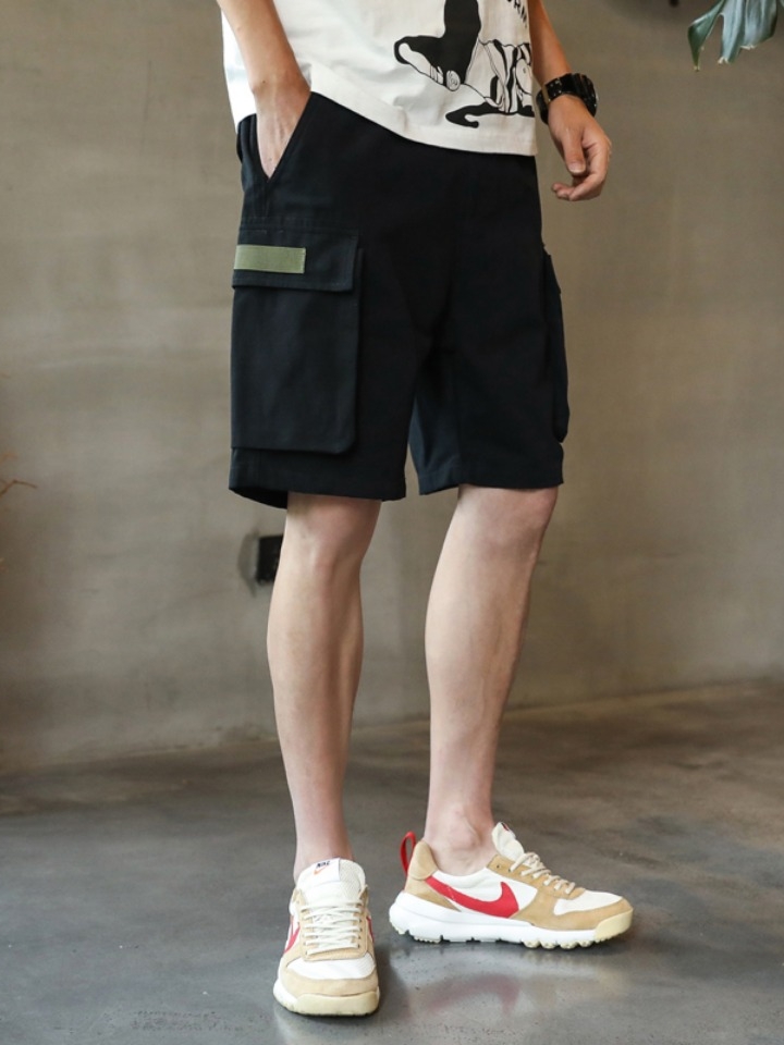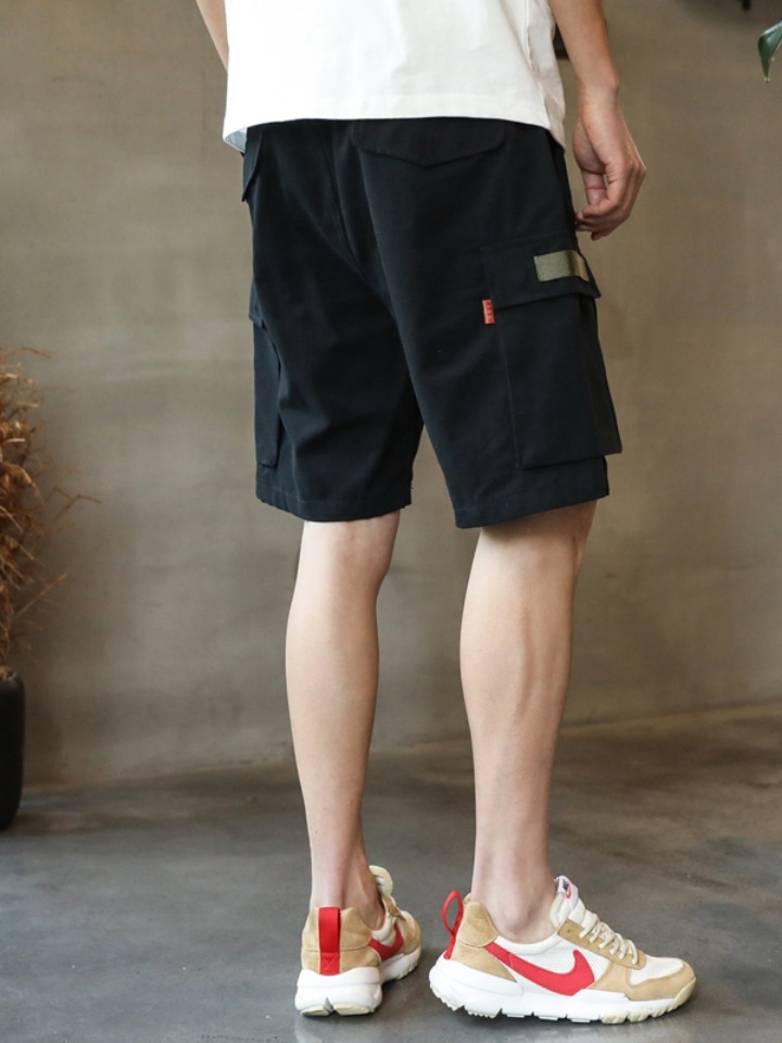 此款工装短裤采用了优质棉料,,修身的剪裁,精细的阵脚走线,手感柔软且穿着舒适,口袋的设计整体增加了潮流感。