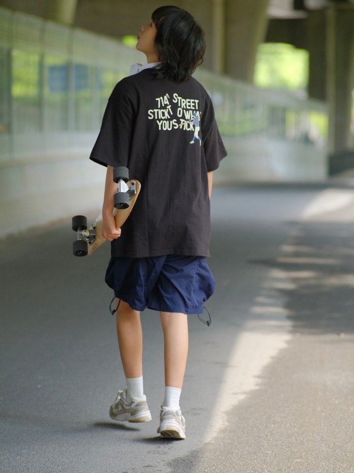 714street这款T恤真的是夏天不可或缺的单品,超级的百搭,这次我选的是酷酷的黑色,胸前还有和背后的印花相呼应,穿着显得我些许美丽动人。