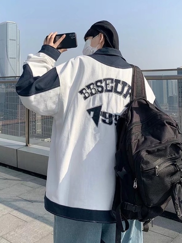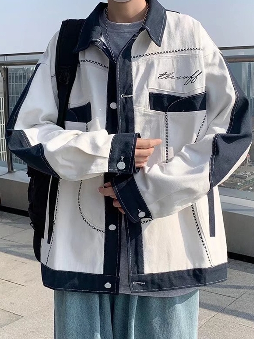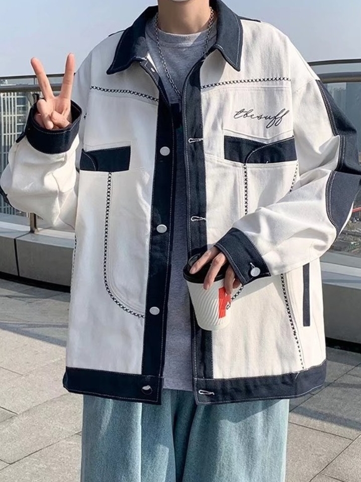 美式风格的工装外套 ,牛仔线缝纫,坚固耐穿,美观大方;简约翻领设计,显得干净利落,突显出浓浓的复古味道。