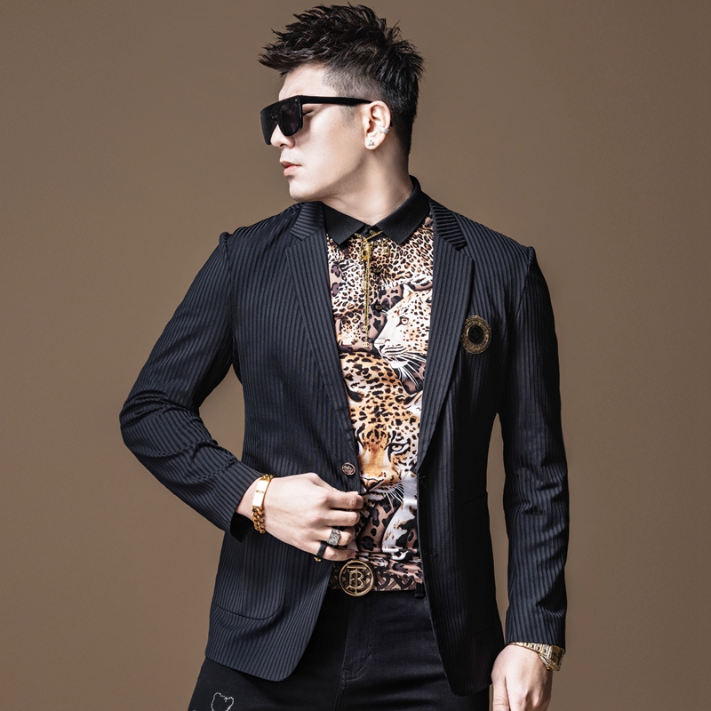西装翻领,修饰颈部线条。修身版型,上身挺括有型。翻领设计,凸显绅士气质。