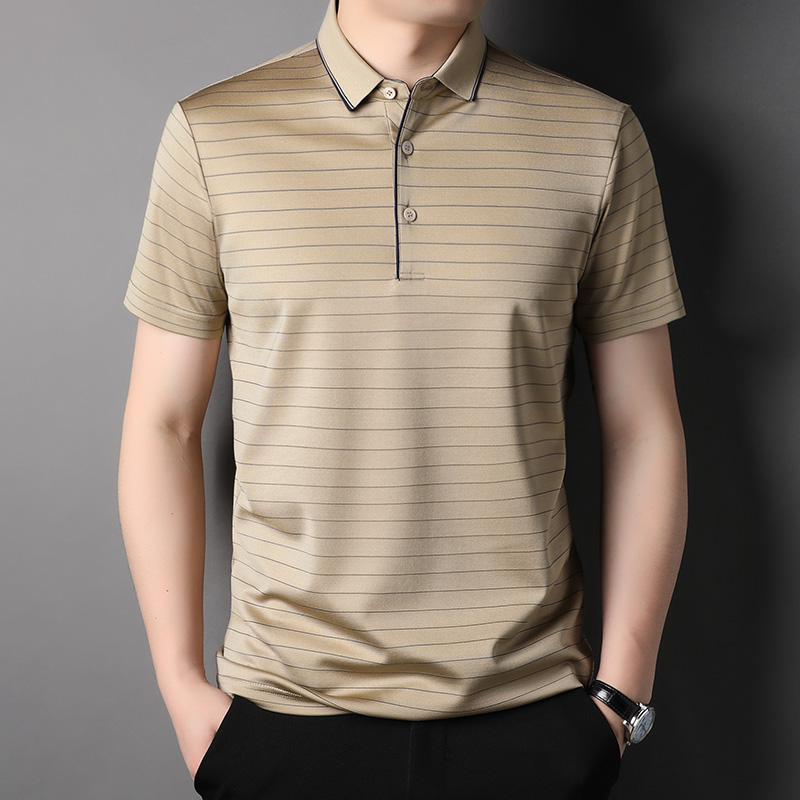 精选桑蚕丝面料,柔软顺滑,亲肤透气,穿着舒适。翻领的设计,时尚有型,彰显男士的干练气质,修身的版型,让你穿出男人的魅力。