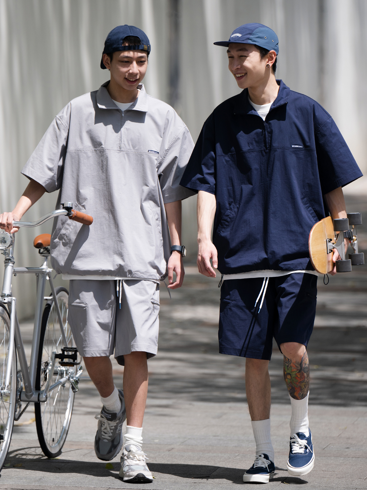 工装短裤搭配一件休闲T恤,便可轻松穿出街头嘻哈潮范,告别土味直男形象,添加了造型感,还能为撩妹助力哦。