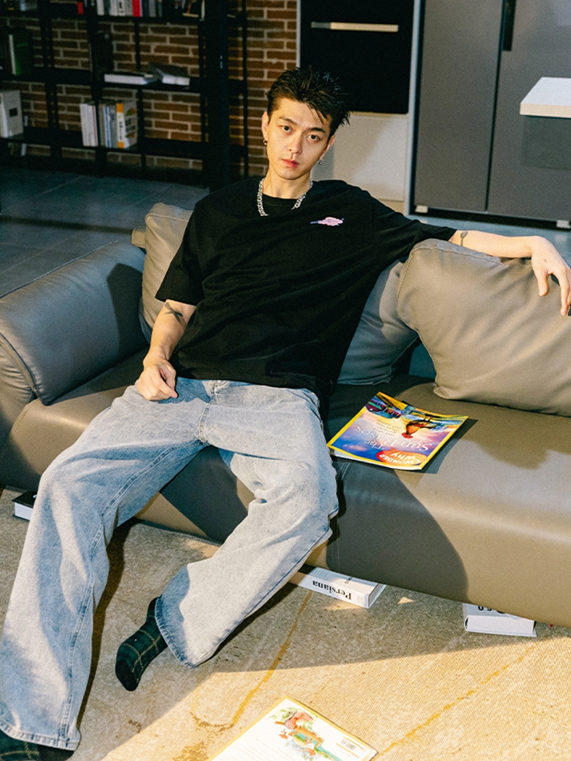 酷黑底色,奠定了暗黑风格基调,后背大幅立体感印花,亮眼的配色,深得我心。搭配牛仔裤,上身瞬间提升街头感。
