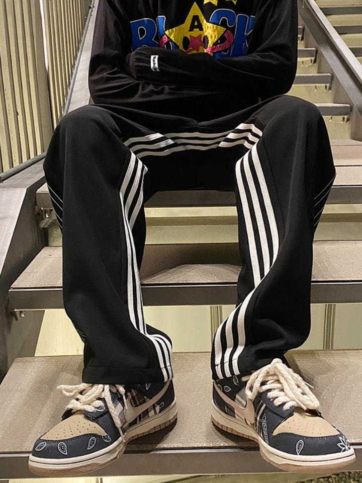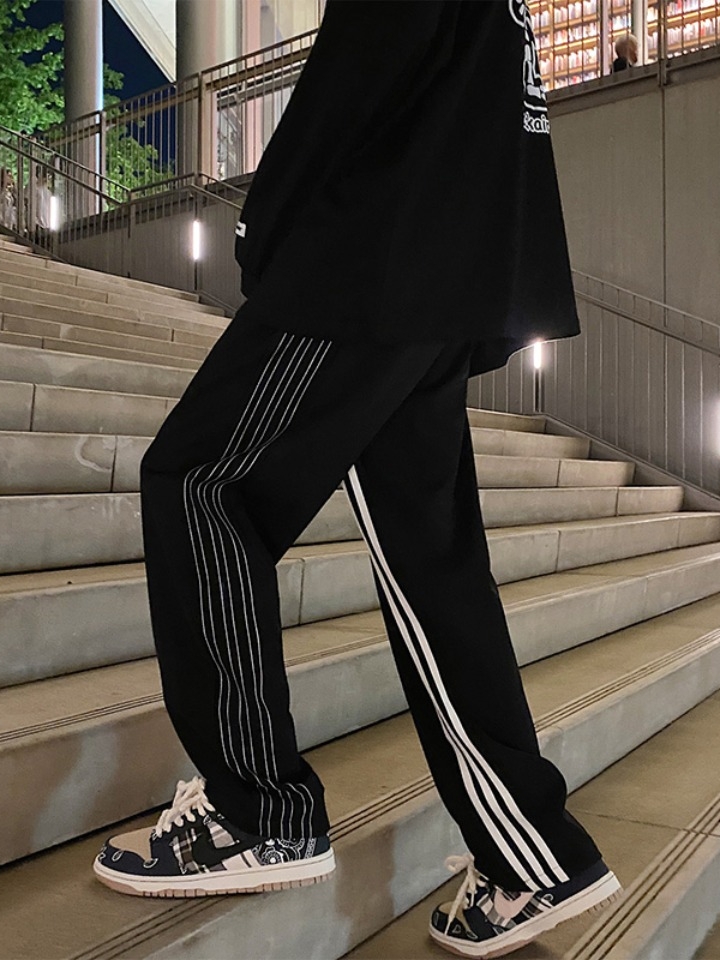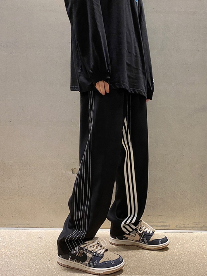 经典时尚的纯黑色直筒九分休闲裤,搭配一件纯色T恤十分简约,是个很中规中矩的选择。配合整体风格造型,上身更显修长腿型。