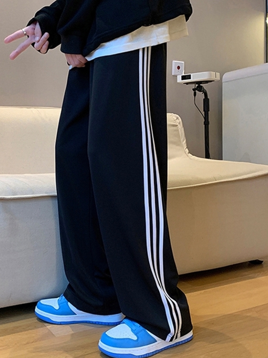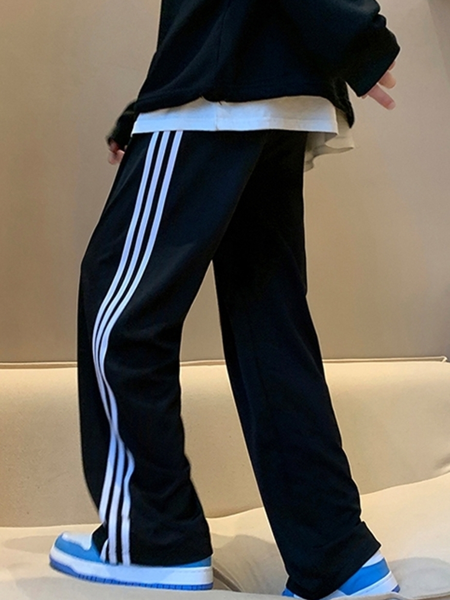 条纹运动裤,搭配高品质印花和独特的条纹工艺,使得整条裤子质感极好,同时展现十足的复古风气息;侧边条纹和字母印花点缀,释放街头个性style!