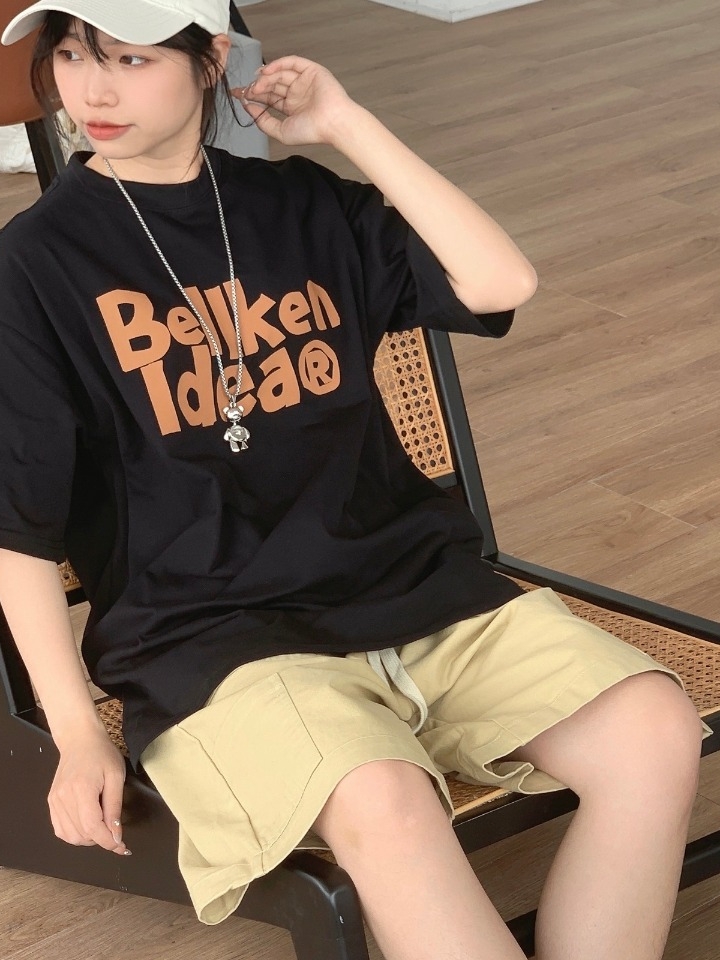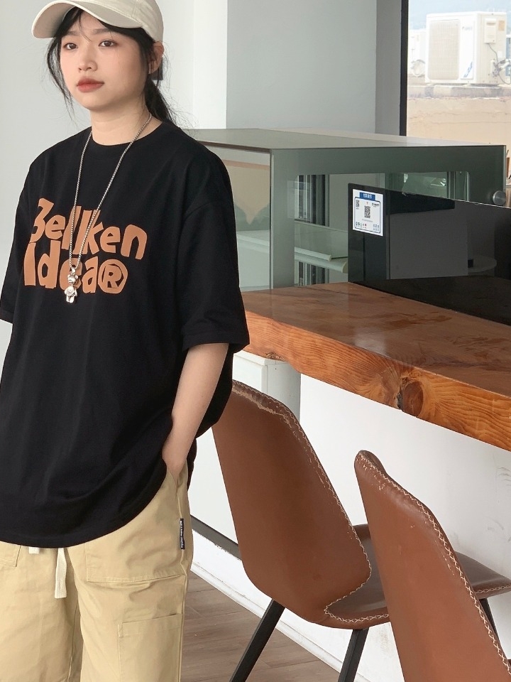 这款t恤是简约的风格,宽松的版型,时尚百搭,胸前的字母印花,很有个性,搭配牛仔裤或者短裤都很好看。