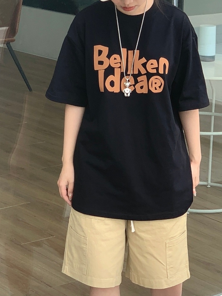 这是一款很简约的基础款短袖T恤,胸前的印花是这款T恤的主要时尚元素,增加了与众不同的风格。