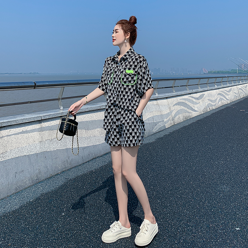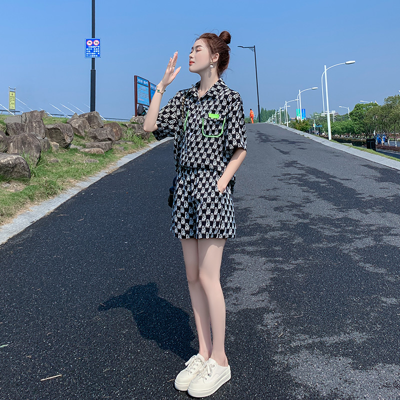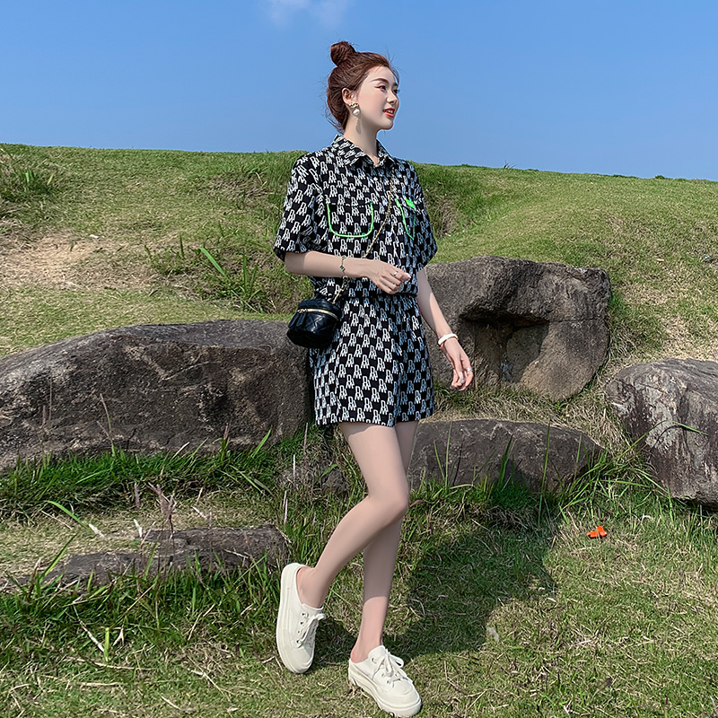 撞色拼接设计,时髦洋气。短裤设计,修饰腿部线条。宽松版型,穿着舒适自在。