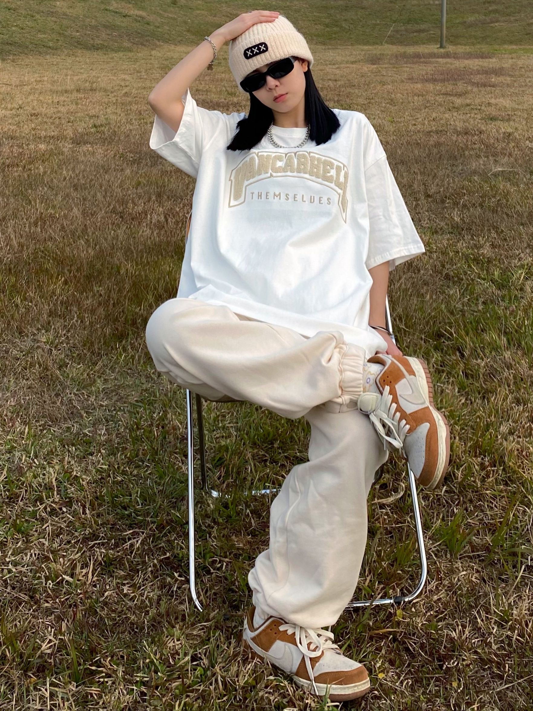 全棉材质,胸前字母搭配简约不繁,这件质感真的很棒,搭配球鞋就足够好看。上身效果和搭配的能力都是极好的,略宽松的版型。