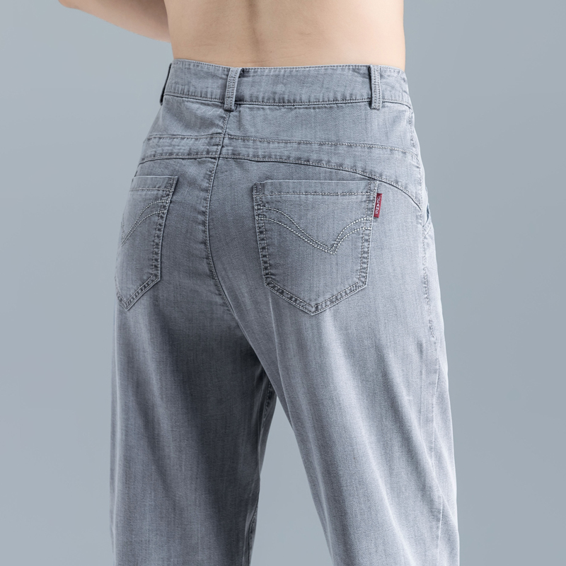 高腰设计,拉长身材比例。高腰牛仔裤,显瘦显腿长。直筒裤型,修饰腿部线条。