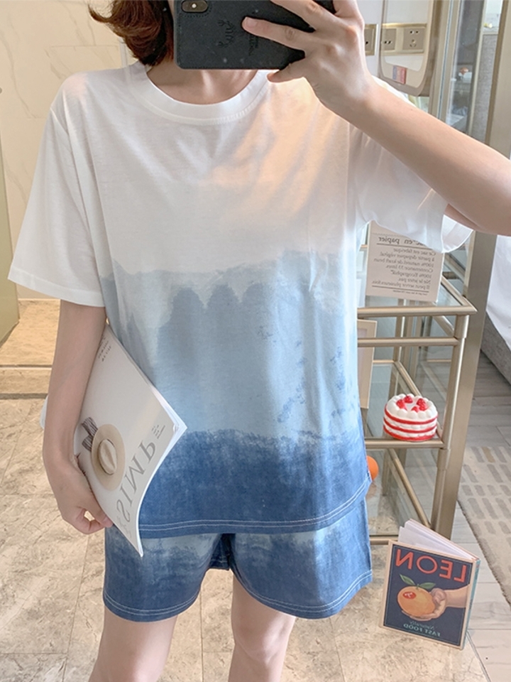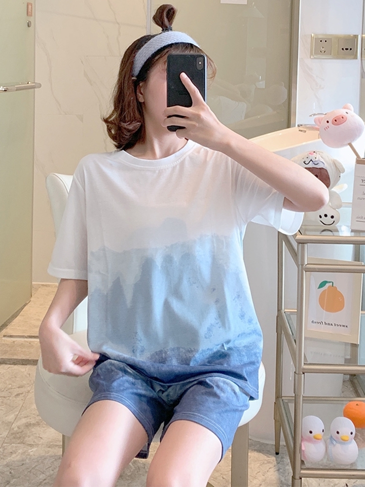 这款T恤的颜色用了蓝色系的渐变效果让这款T恤看起来充满了小清新的感觉,很有设计感的款式,搭配出来也不会显得单调。很好看啊