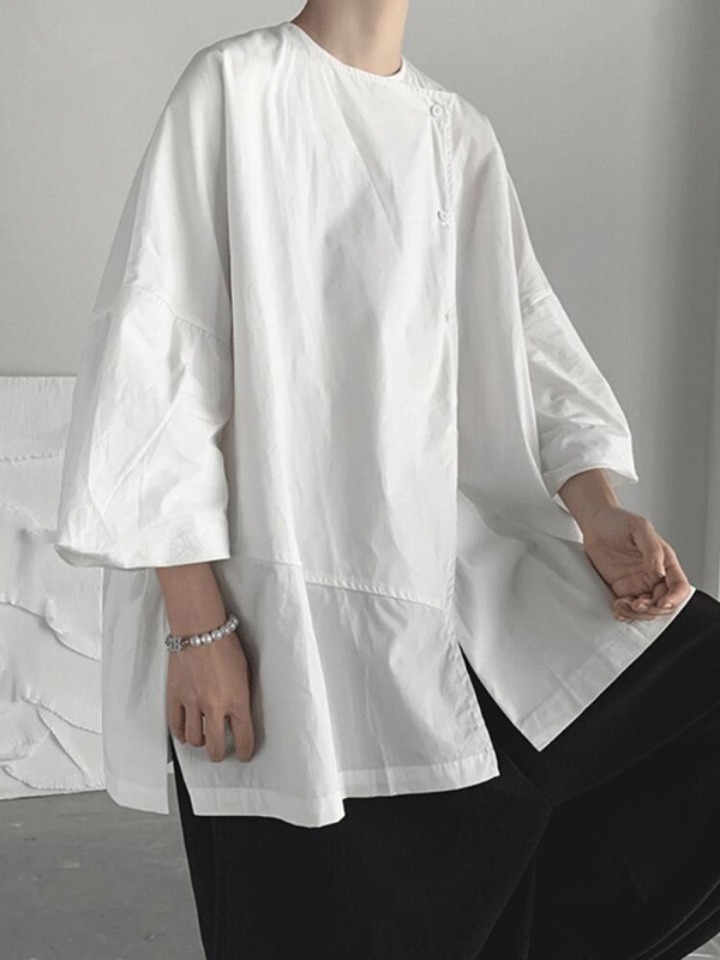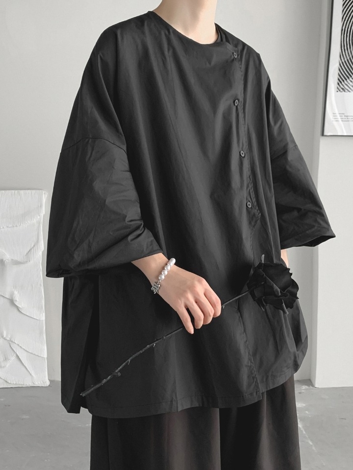港风男士七分袖休闲衬衫,很唯美很帅气,方领的设计,瞬间让人看起来是那么显高又有气息,这样的衬衫不不是应该拥有一款啊!