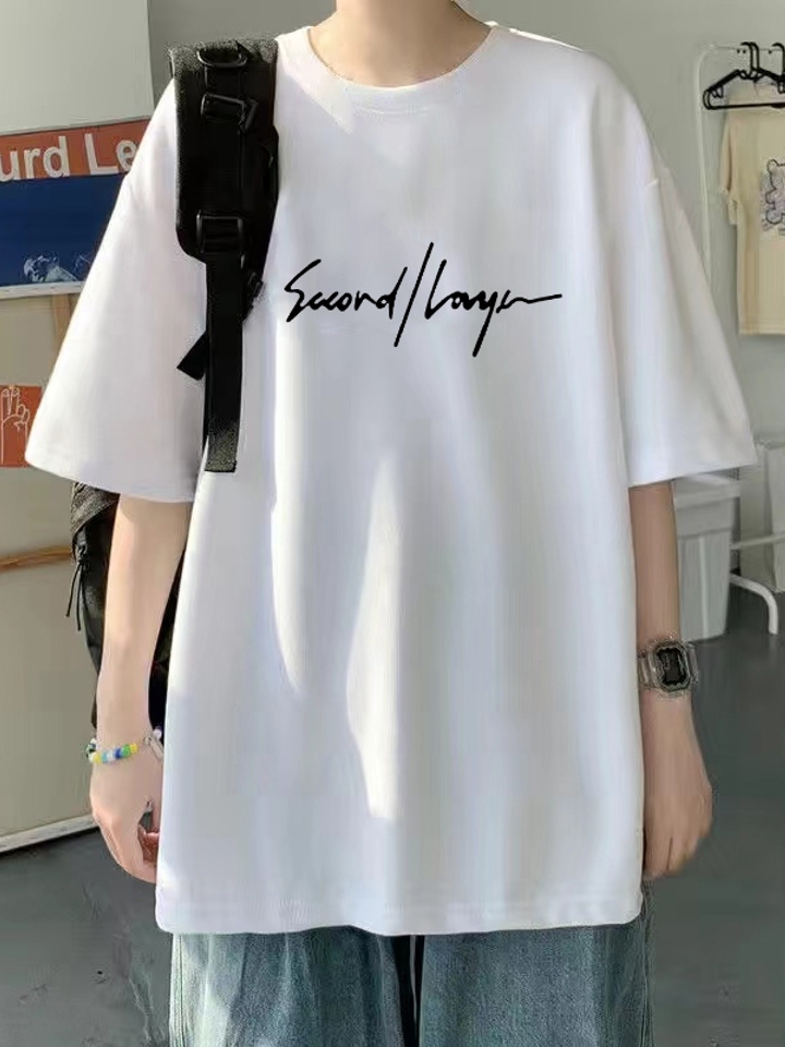 修身的版型,非常的帅气,有型。个性的字母印花设计,潮范儿十足,时尚百搭,简约随性,新颖的圆领设计更显时尚大方。