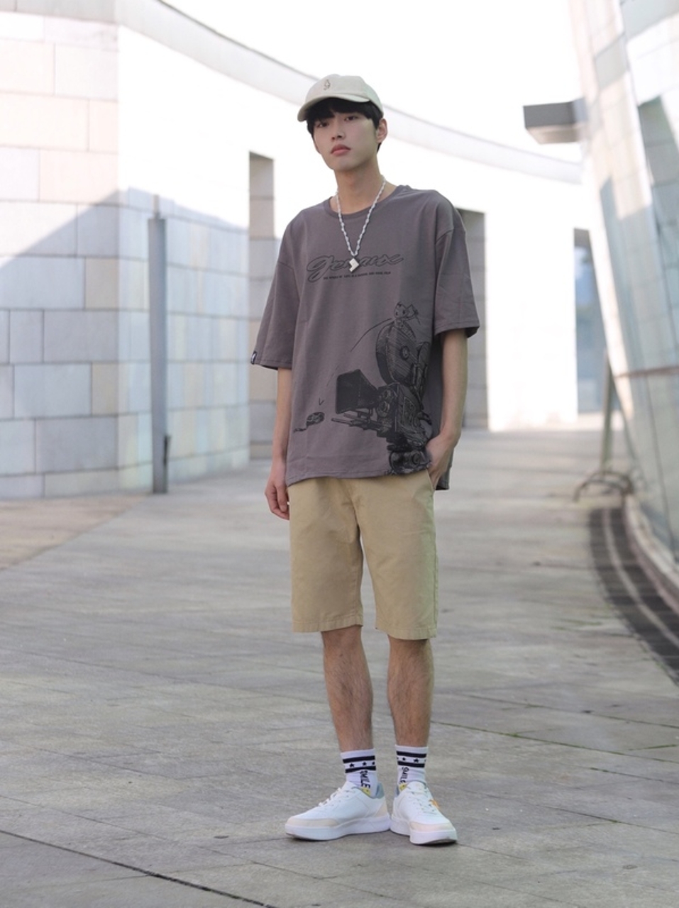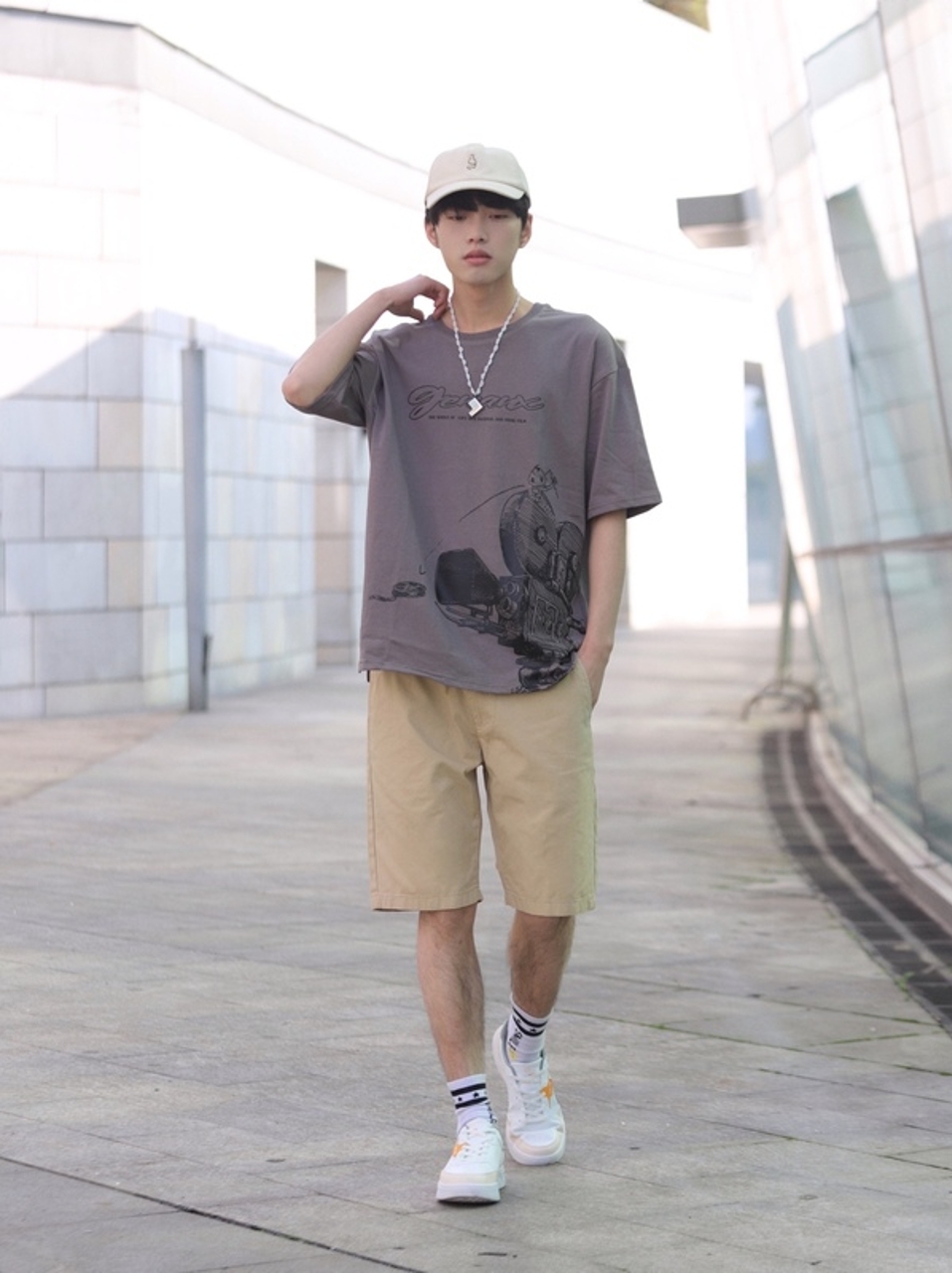 男生夏天最舒服的样子,没什么比夏天穿着宽松的大T恤,配上大短裤,踩着人字拖更舒服的穿搭了吧,搭配性给100分的工装短裤,夏天备一条准没错。