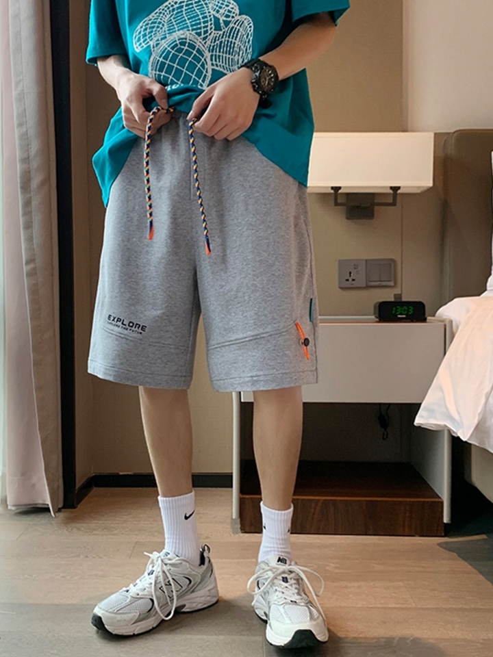 纯色休闲短裤,百搭又耐脏,采用松紧腰带,休闲又好看。裤腿一侧采用字母贴布,时尚又好看。