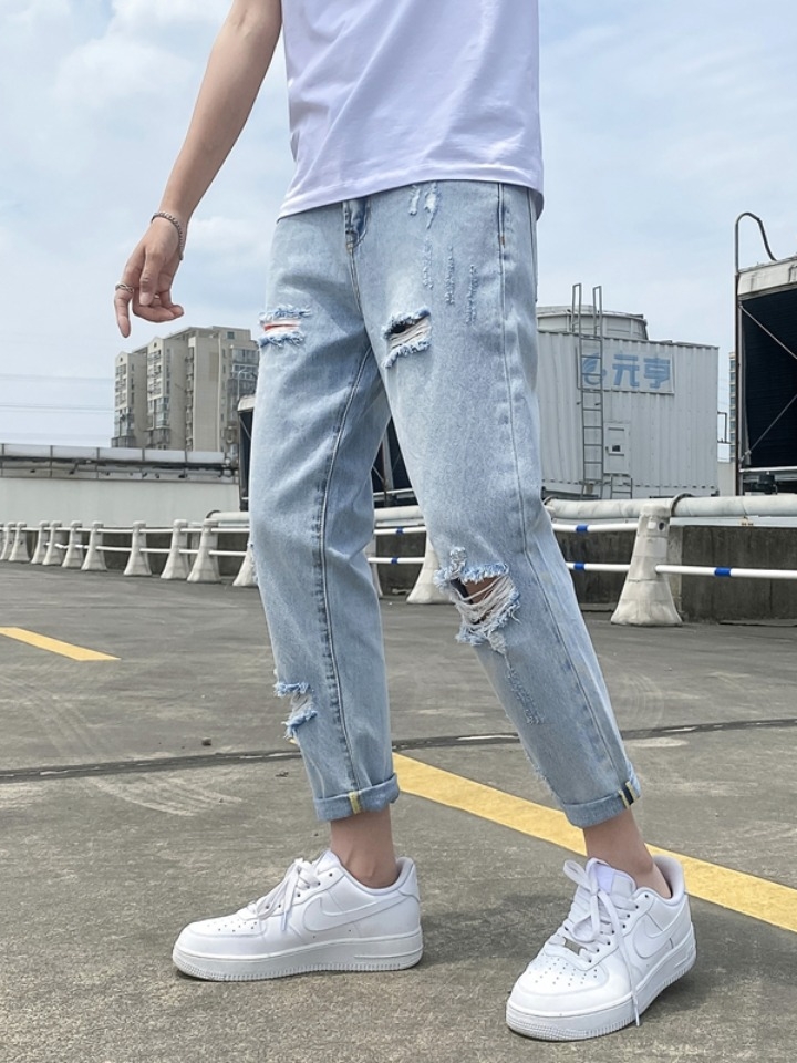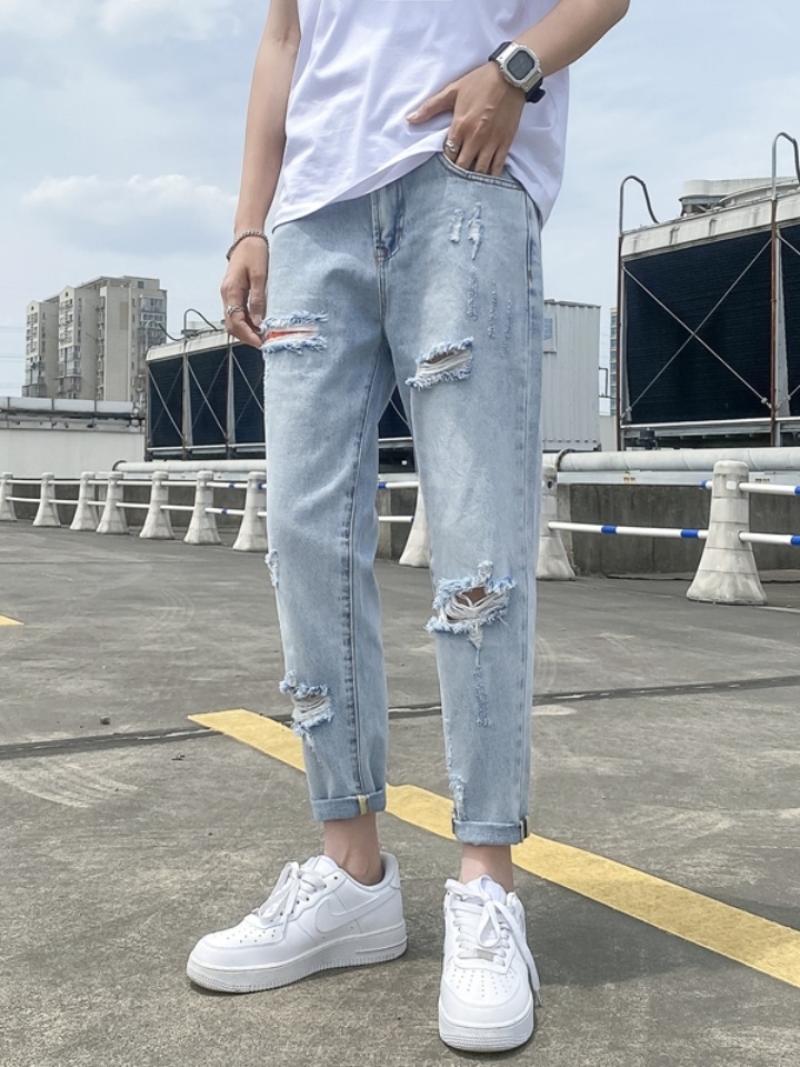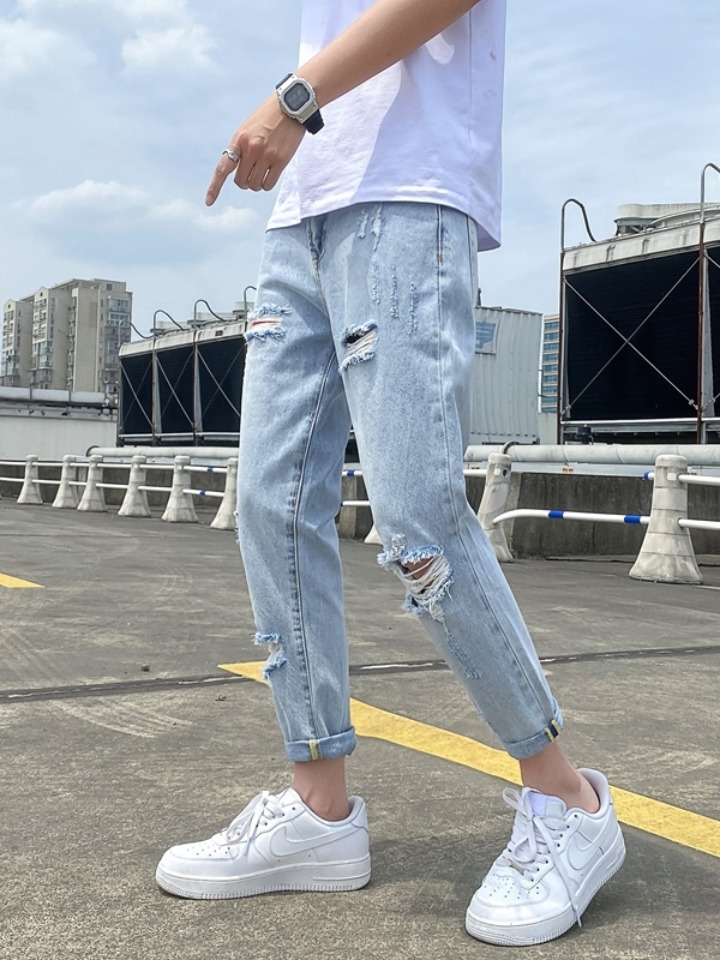 破洞牛仔裤真的是非常的时髦,这款牛仔裤最大的特点就是宽松直筒的裤腿,还可以拉长腿型,更凸显一种不羁和帅气感