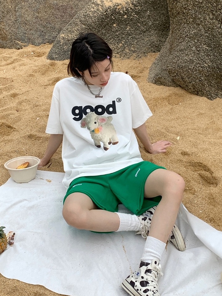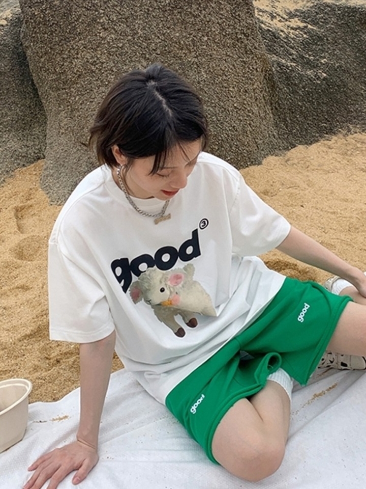 喜欢oversize款式的姐妹一定喜欢这件T恤,宽大的版型适合所有身材的姐妹哦,而且前面的小羊图案特别的可爱,穿上就变可爱了~