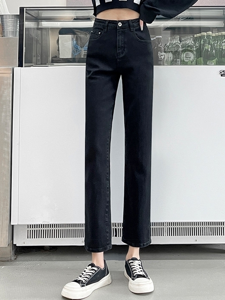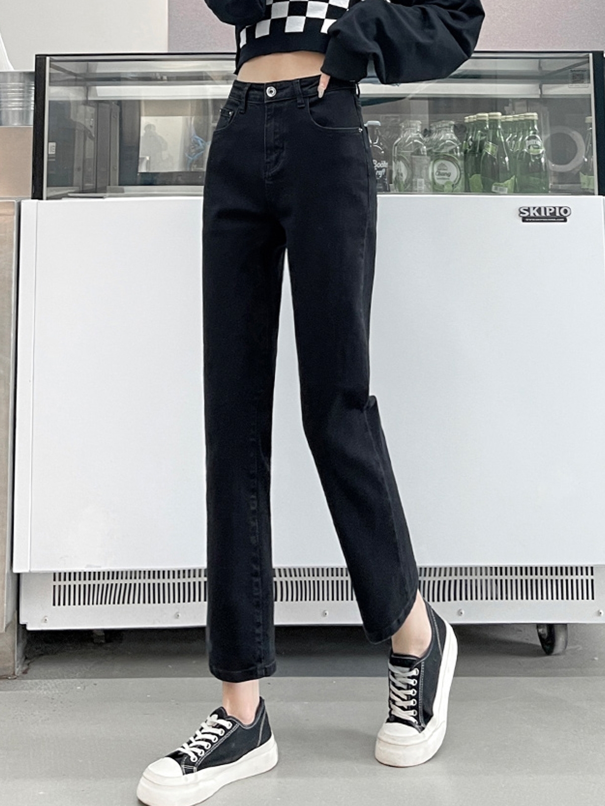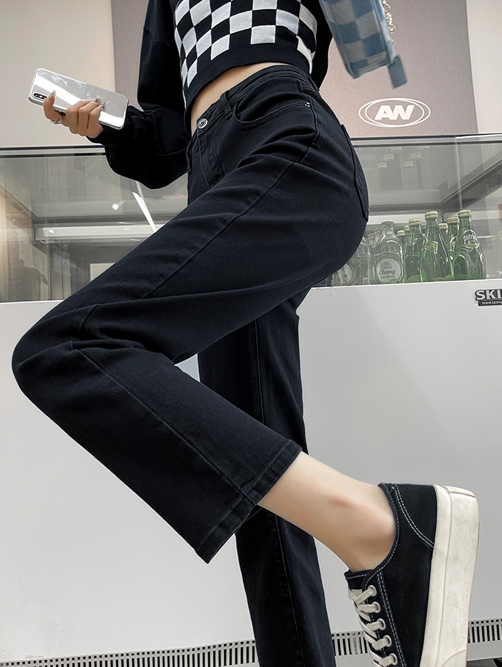 高腰的设计,宽松的版型,包容你的腿部曲线,直筒裤腿,对身材没有那么严格,反而显瘦。搭配白体恤或者背心,随性慵懒。