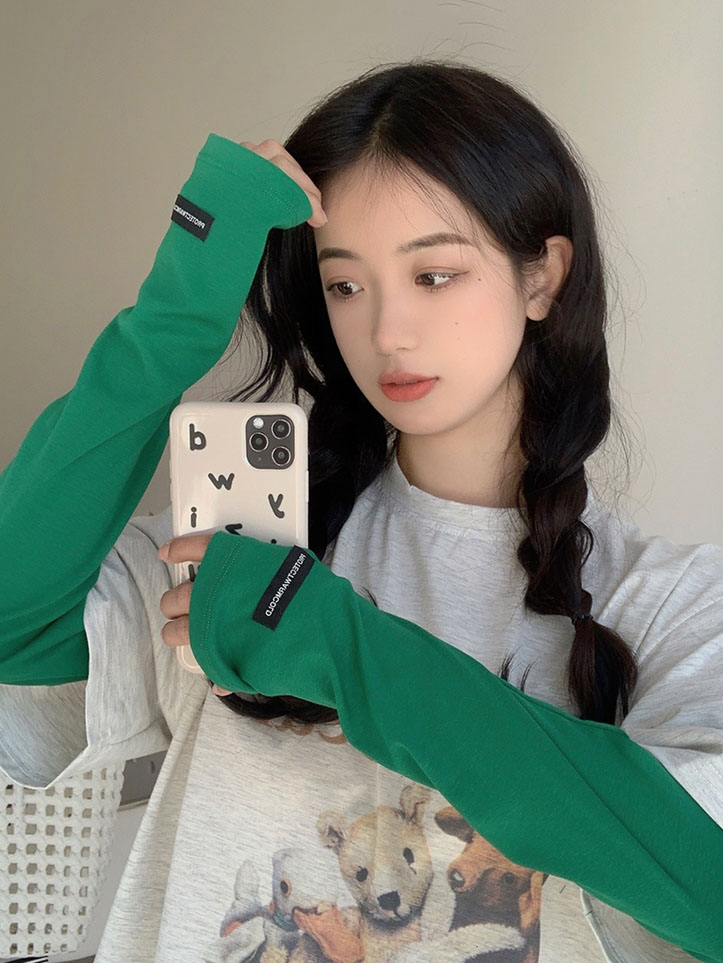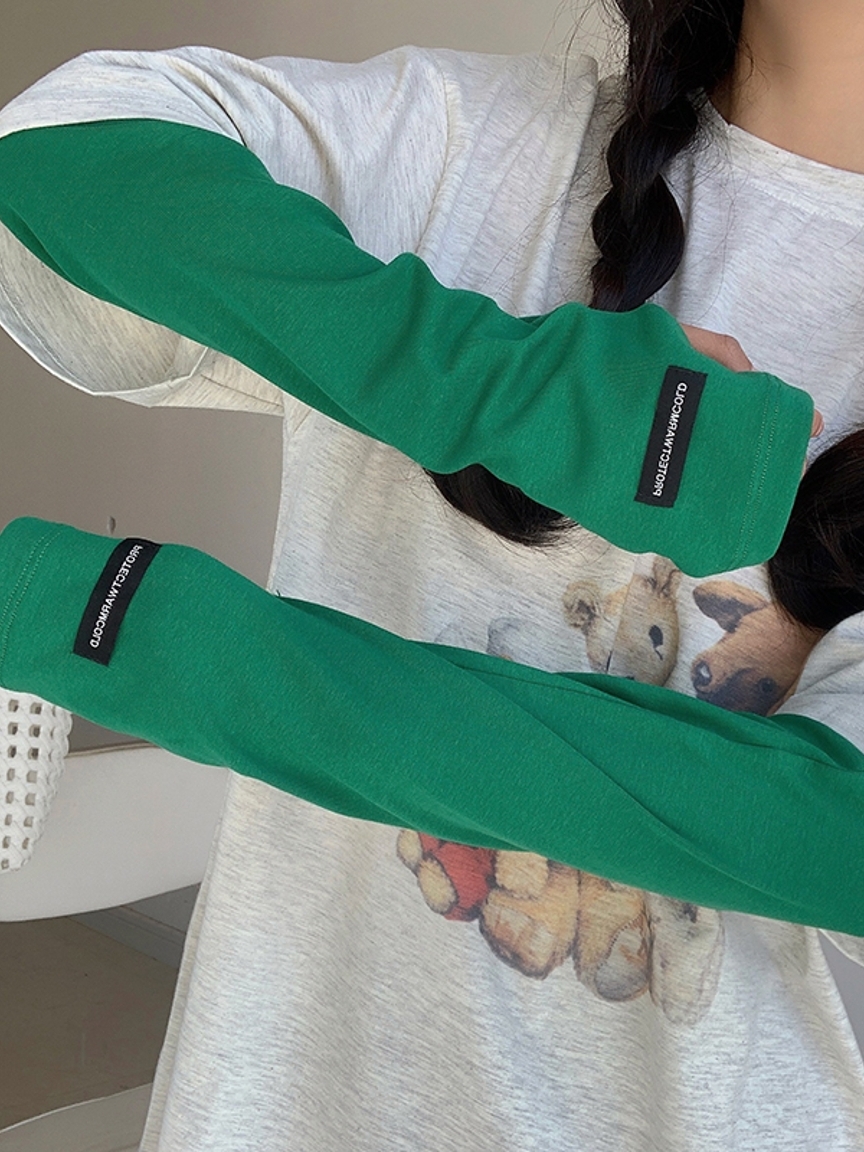 绿色的防晒袖具有较高的颜值,在艳阳高照的时候外出不仅可以防止晒伤我的娇嫩手臂还有装饰的效果。