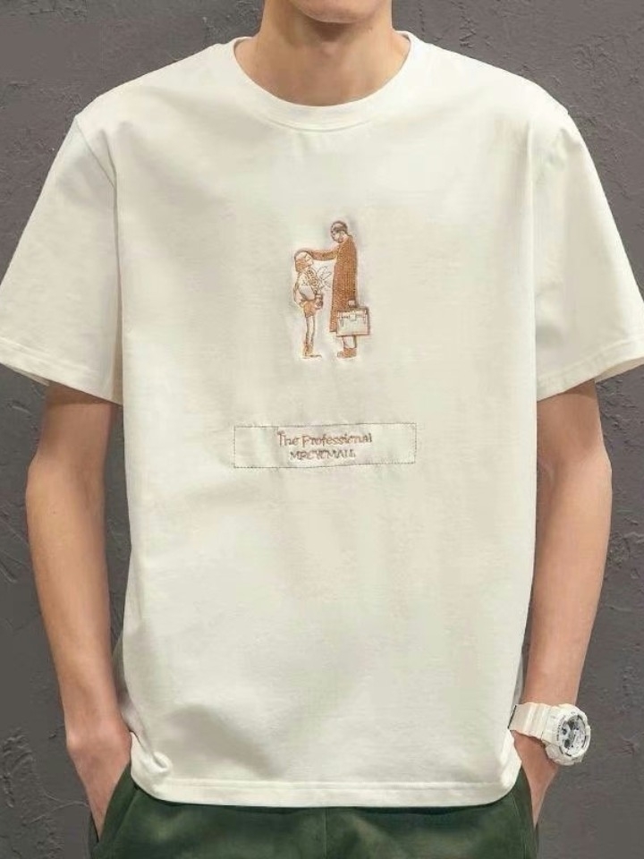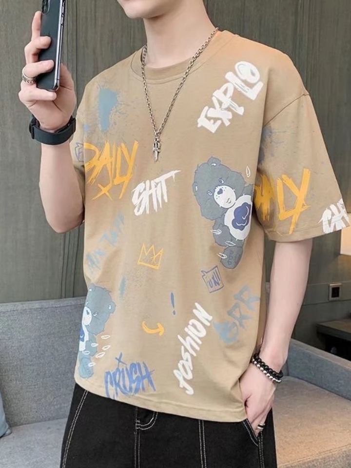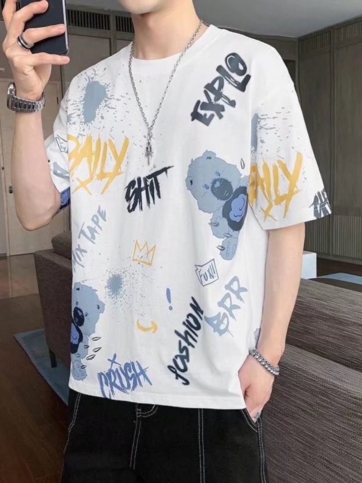 这款简单款式的日常T恤,非常的适合男生日常的穿搭,面料舒适透气,版型宽松,有着时尚的印花,十分才潮流。