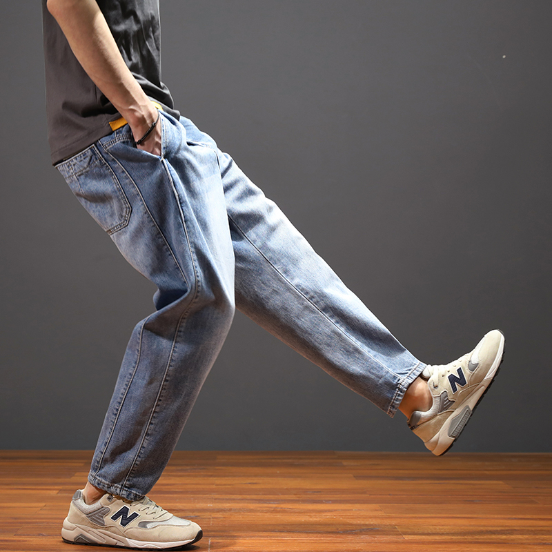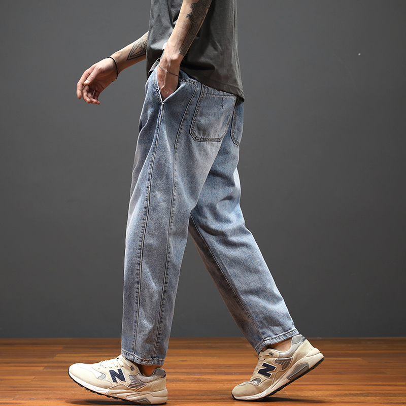 高腰设计,拉长身材比例。高腰牛仔裤,显瘦显腿长。直筒裤型,修饰腿部线条。