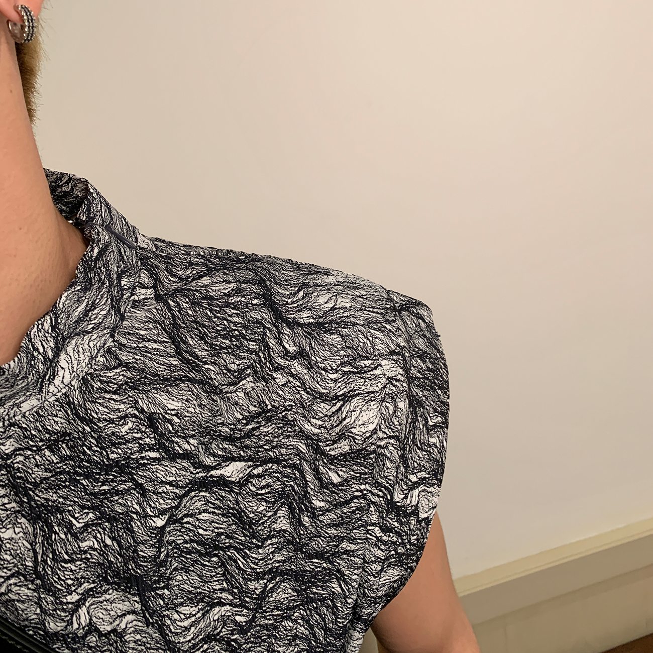 简约的高腰设计,搭配上修身的版型,上身显瘦又显高。