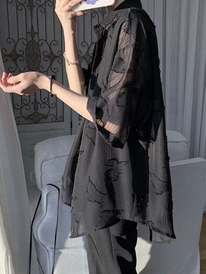 经典衬衫尖领领型设计,透射出复刻经典的时尚味道,显得更加精致干练;衣身的动物图案印花设计,彰显青春活力时尚;宽松短袖版型