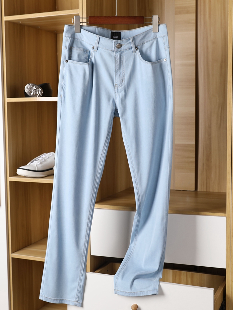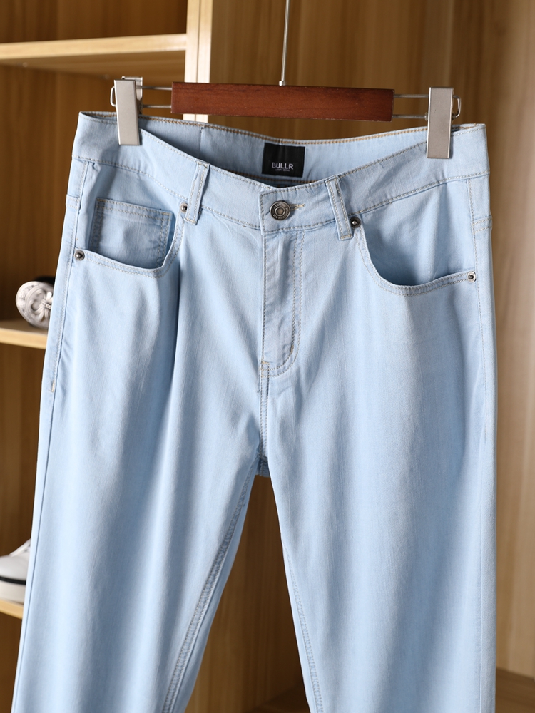 这款牛仔裤,采用了水洗工艺,手感柔软,穿着舒适。