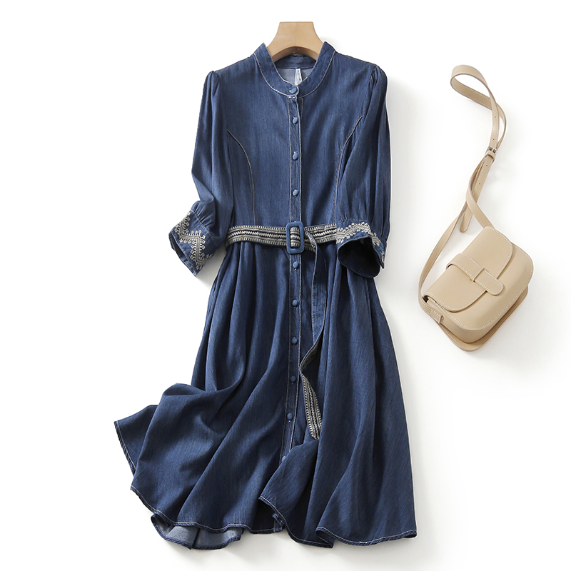 连衣裙是简约的风格,刺绣的样式,时尚大气,宽松的版型,遮肉显瘦,很有气质,搭配高跟鞋或者裙子都很好看。