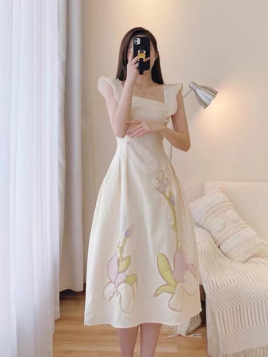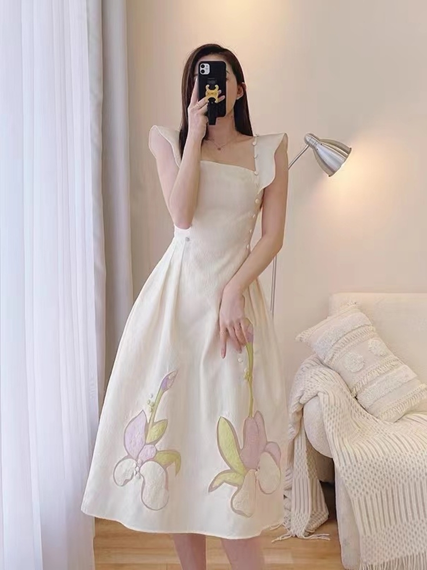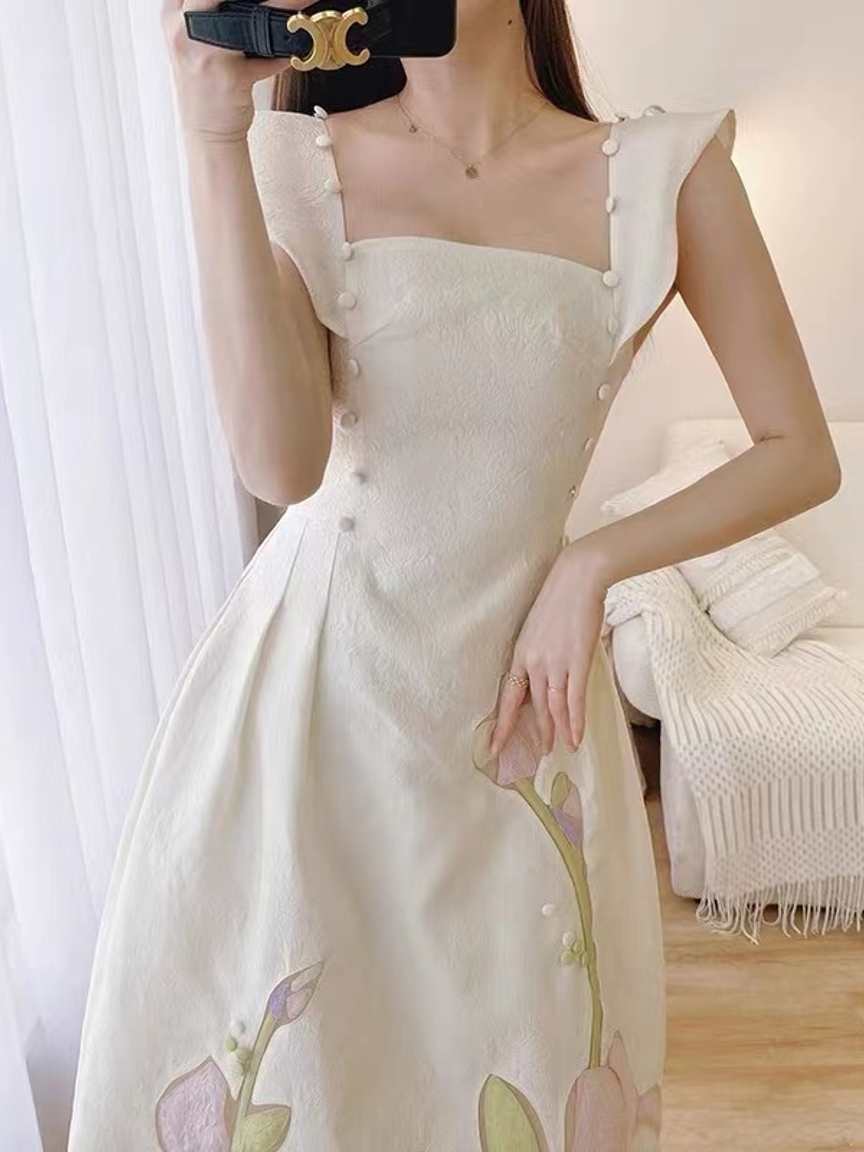 方形的领口设计,最大限度的展露了女性的脖颈和锁骨线条,透出了几分女人味,裙摆设计的相对宽松,穿上可以无拘无束的行走。