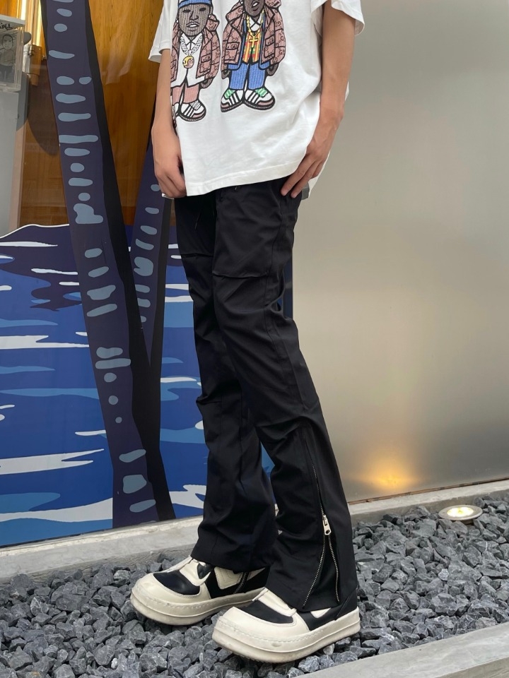 黑色微喇叭休闲裤,简单合身的A字版型剪裁,裤腿上窄下宽,给视觉上更加显瘦,凸显窈窕身材,展现女神范。