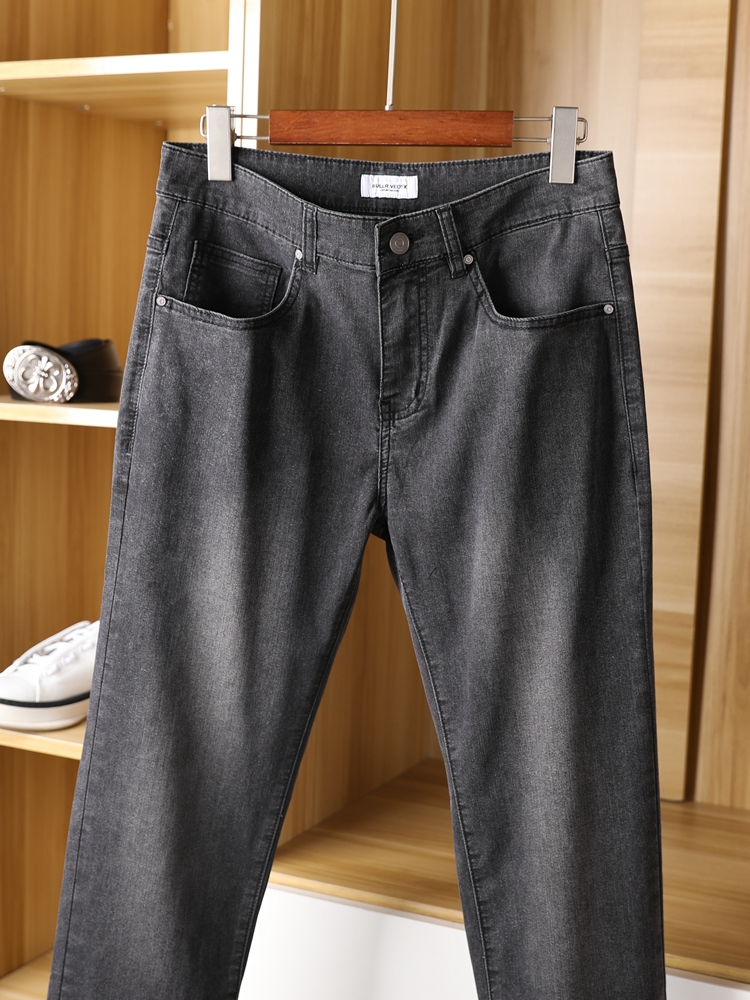 高腰设计,拉长身材比例。高腰牛仔裤,显瘦显腿长。直筒裤型,修饰腿部线条。