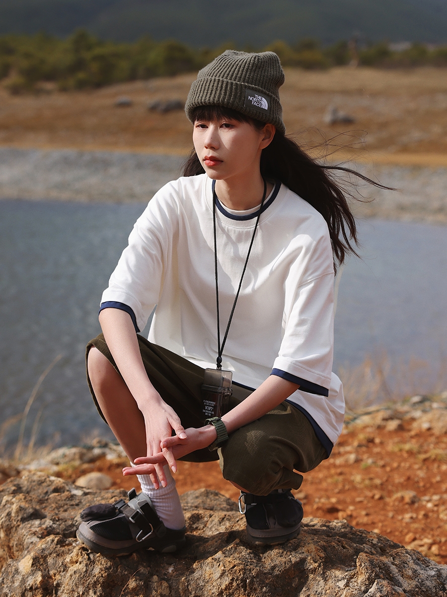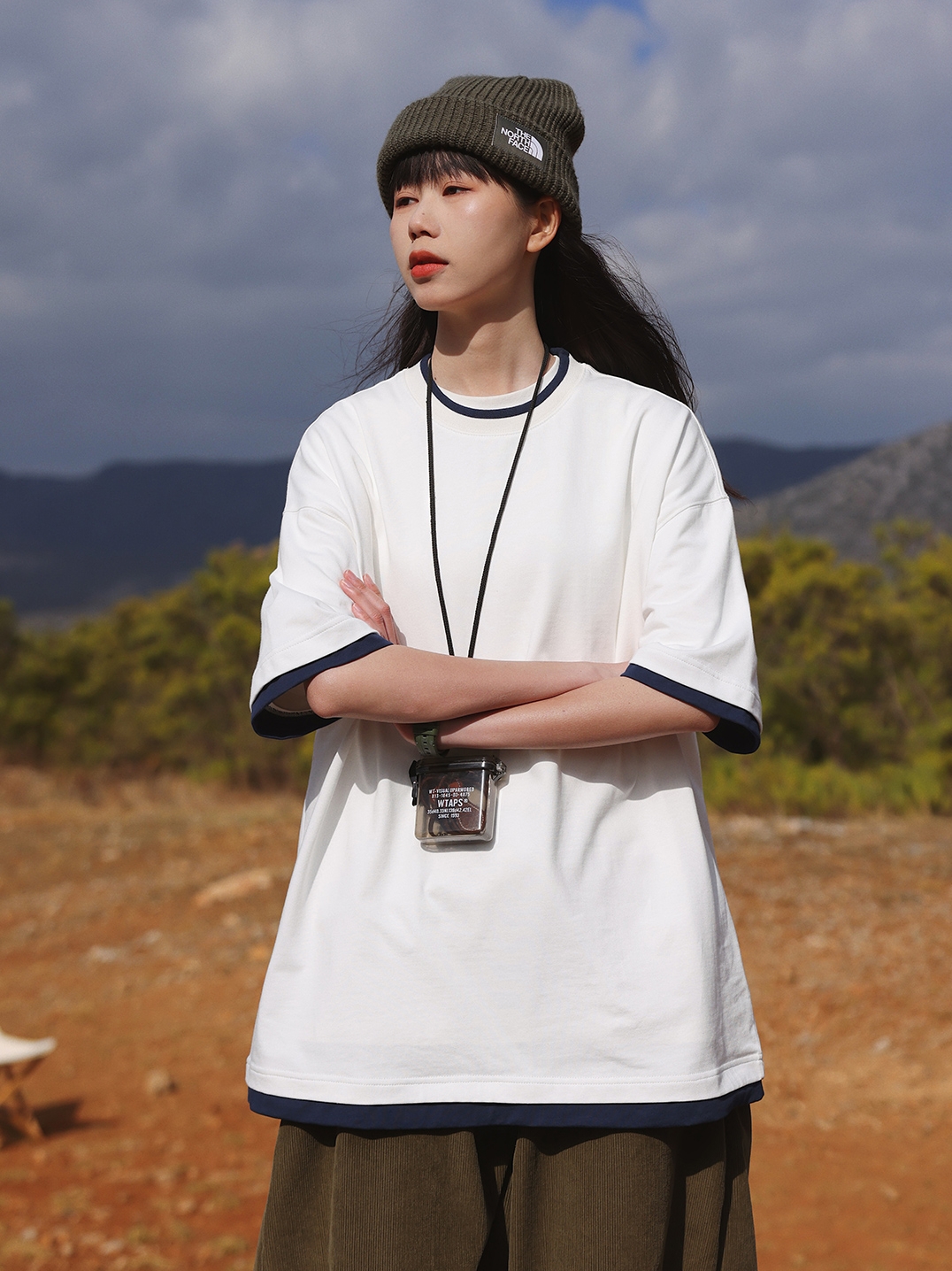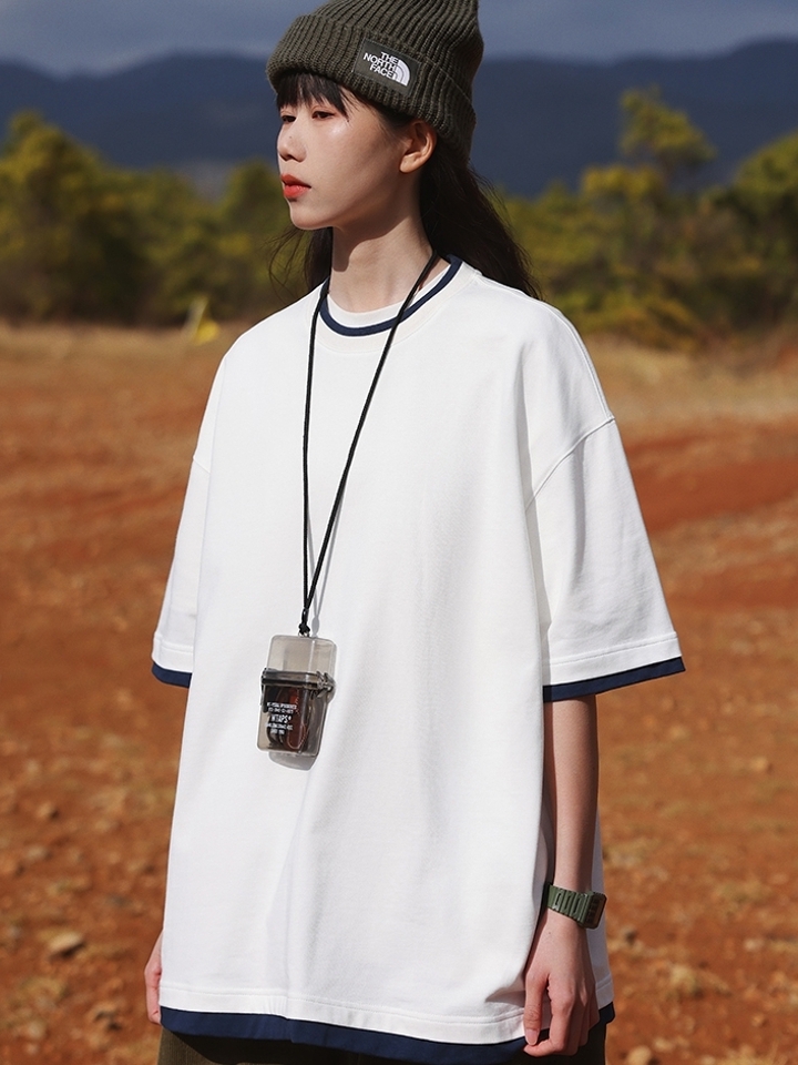 纯色的主要设计,简洁时尚,带有一丝日系简约风格,并且采用宽松的版型设计,更是增添清凉舒适,不挑身材。加上其个性的拼接款式,体现了不一样的层次美感。