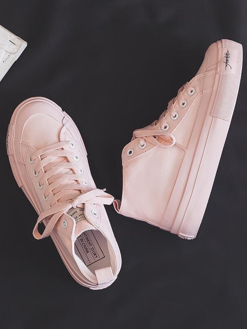 很有青春活力感的一双帆布鞋,它是高帮的设计,穿上还能修饰小腿线条,无论是搭配牛仔裤休闲裤,还是短裙短裤都是很有少女感的。