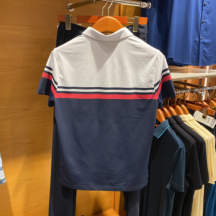 翻领设计,修饰颈部线条。短袖设计,修饰手臂线条。修身版型,凸显身材曲线。