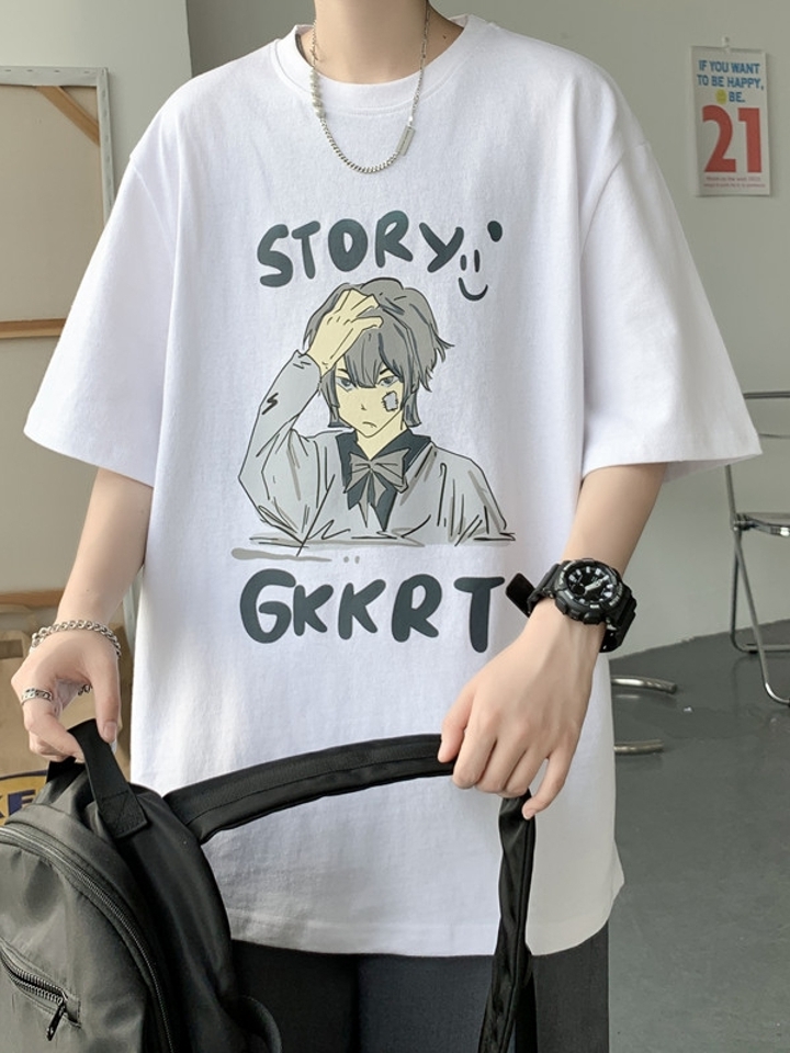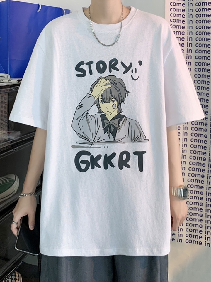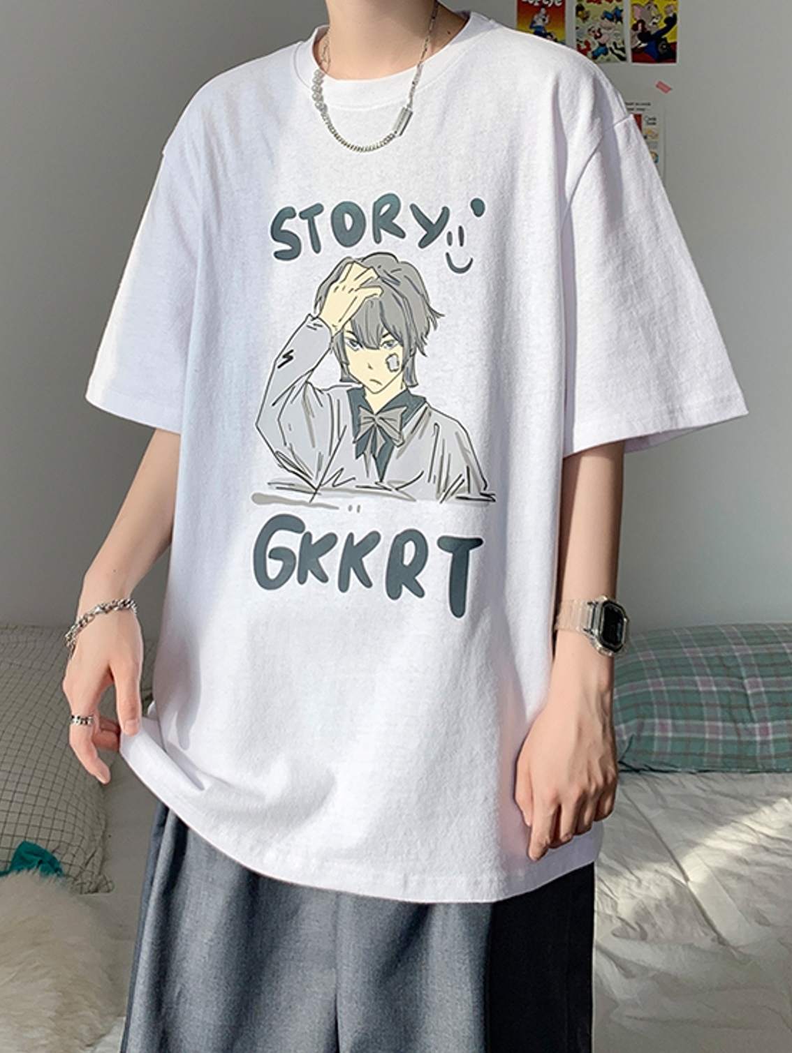 这款设计七分袖的样子,遮住手臂上的肉肉,整体都比较简单,宽松版型,几乎不限制身材,胸前卡通动漫印花点缀.