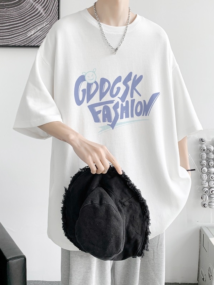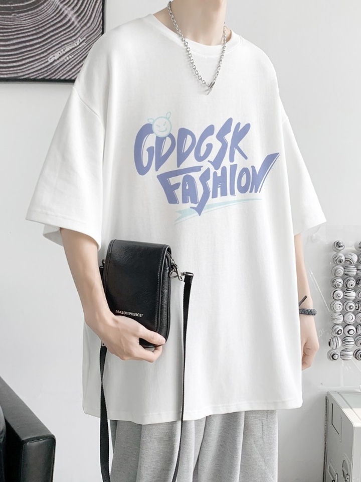 这款t恤是简约的风格,宽松的版型,时尚百搭,胸前的字母印花,很有个性,搭配牛仔裤或者短裤都很好看。