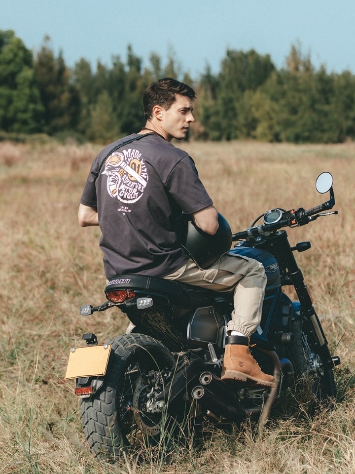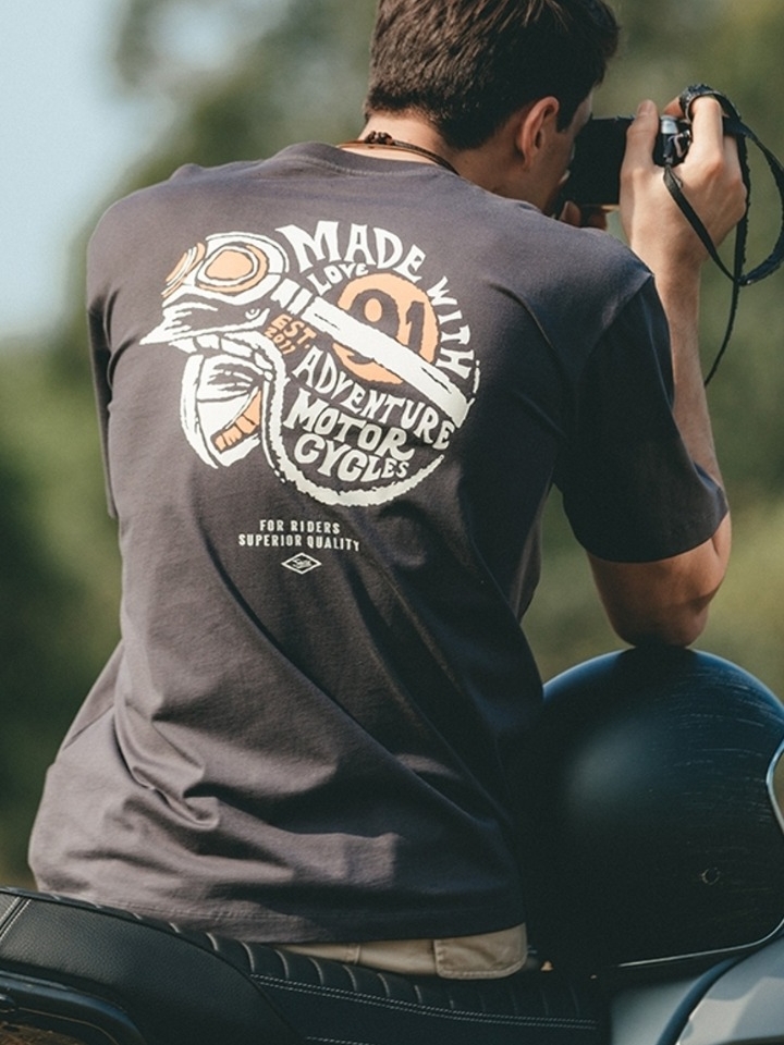 后背的独特印花设计让这款T恤的设计感更加的别致,而且让我们的服饰搭配亮点更加的有意思。很有街头风的一款T恤。