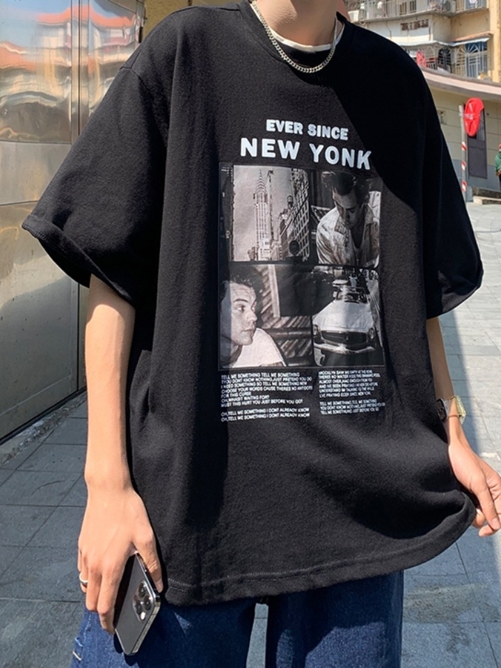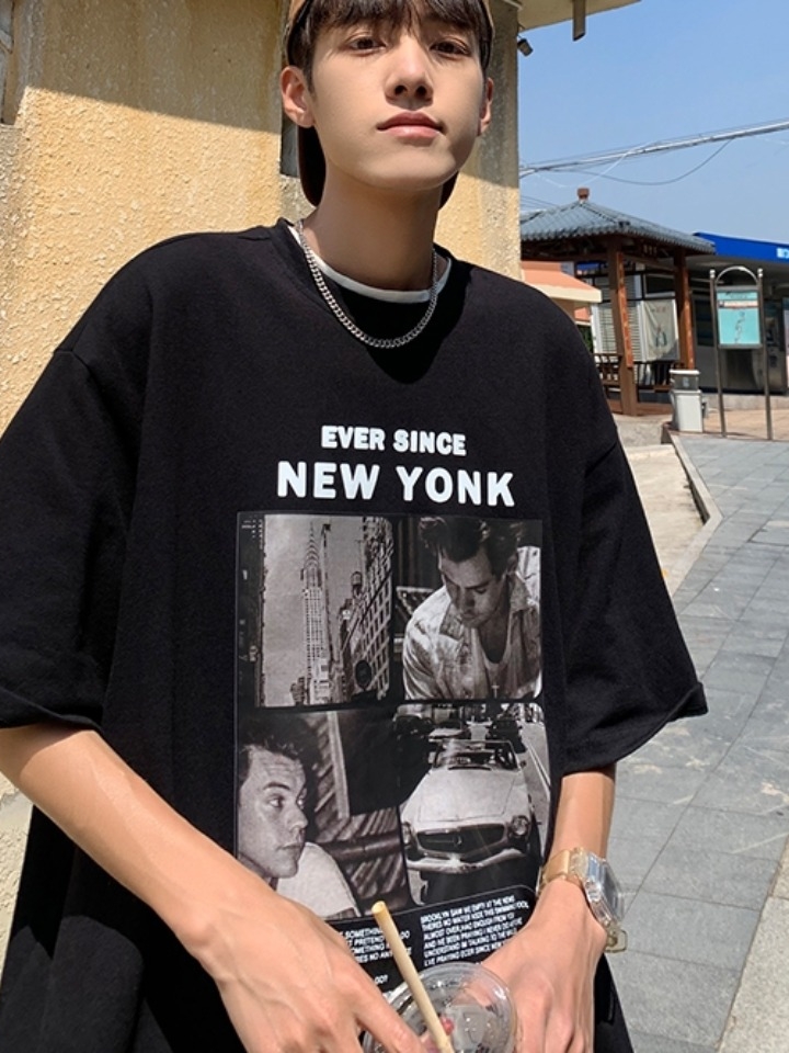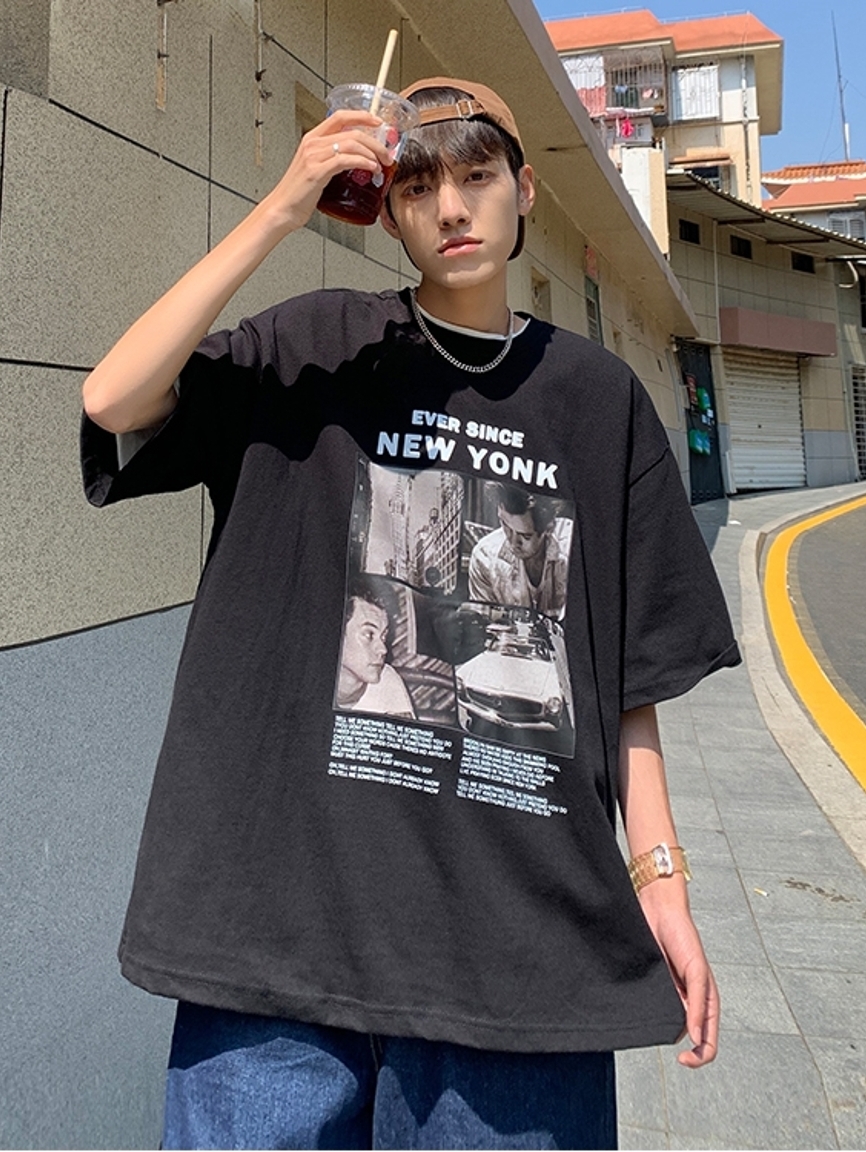 高街潮流T恤,纯色印花的样式非常百搭,版型的宽松设计,包容各种身材,轻松驾驭,面料的柔软,穿着舒适而百搭,非常透气。
