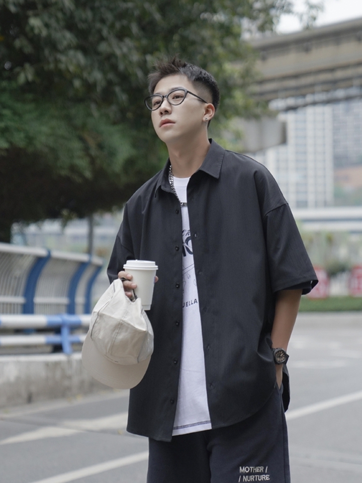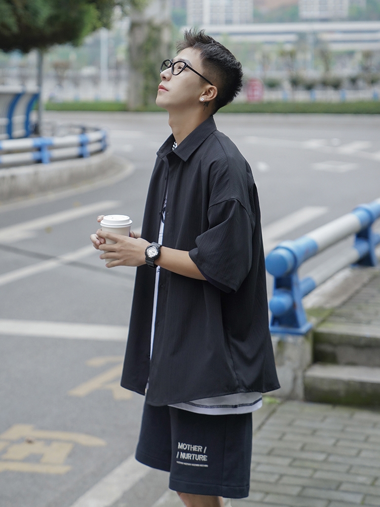 这是一件可单穿也可叠穿的衬衫,我一般喜欢搭配一条宽松的五分裤或者工装裤。这样不仅能增加舒适性,而且也能让我在夏季没有闷热感。