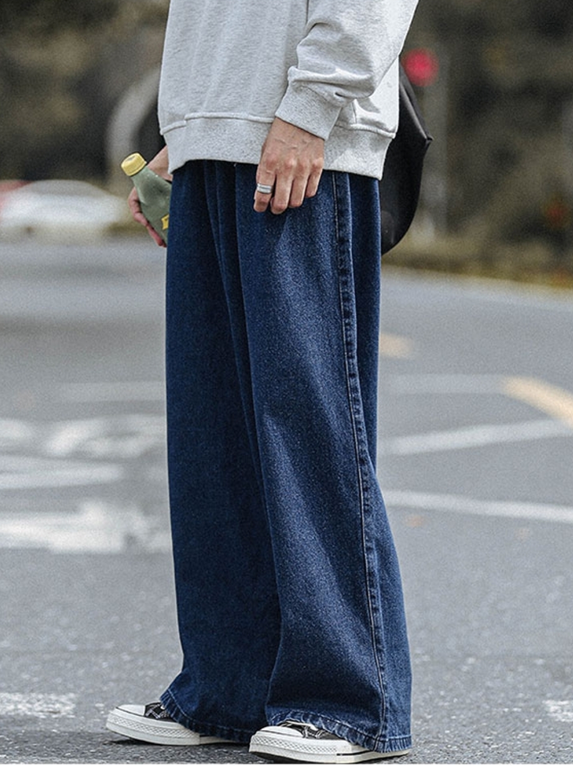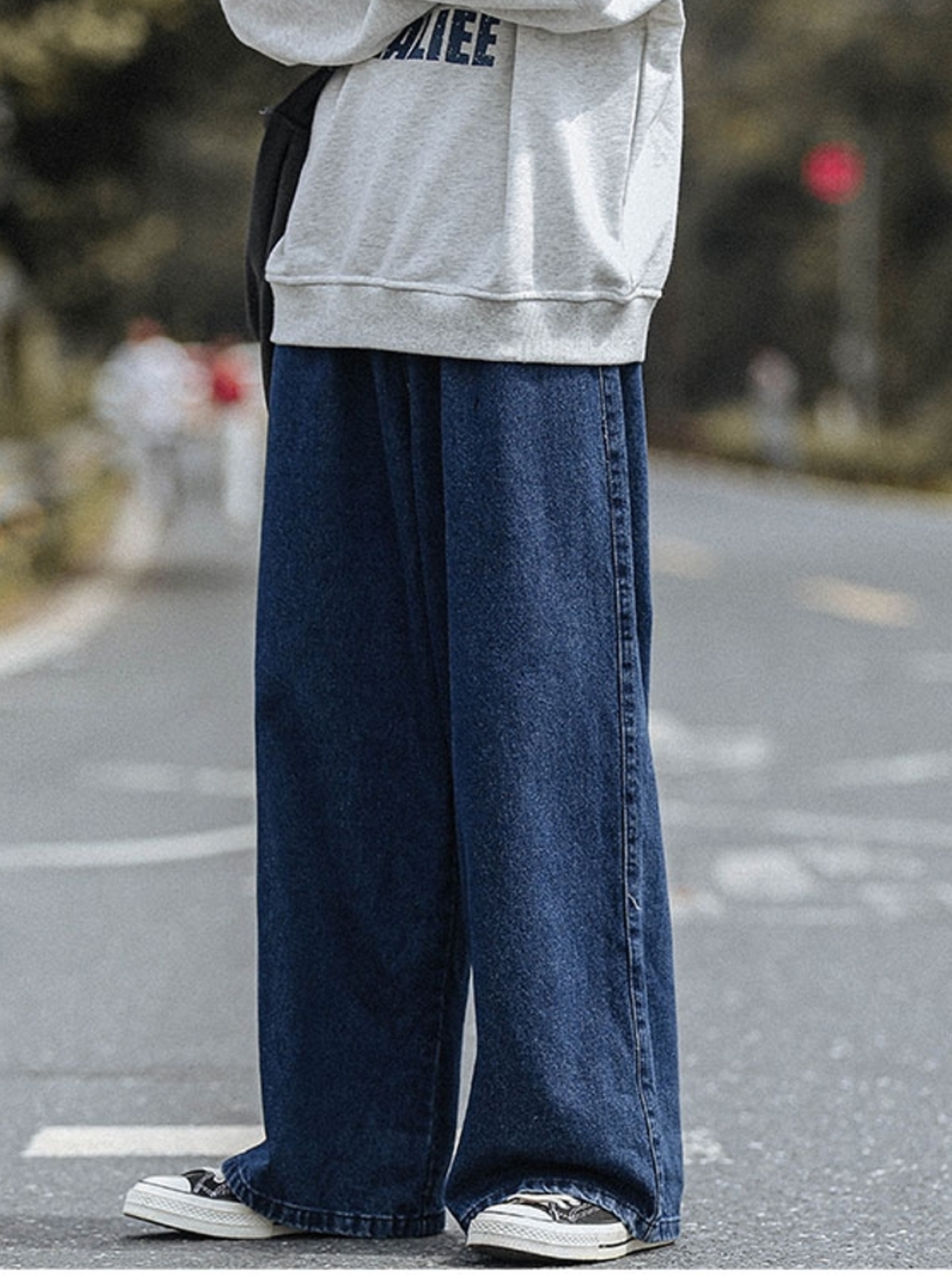 直筒版型来诠释时尚感,简约的牛仔面料无需再多修饰,蓝色看上去很舒适清新,搭配宽松的裤腿,给人一种不羁自由的感觉。