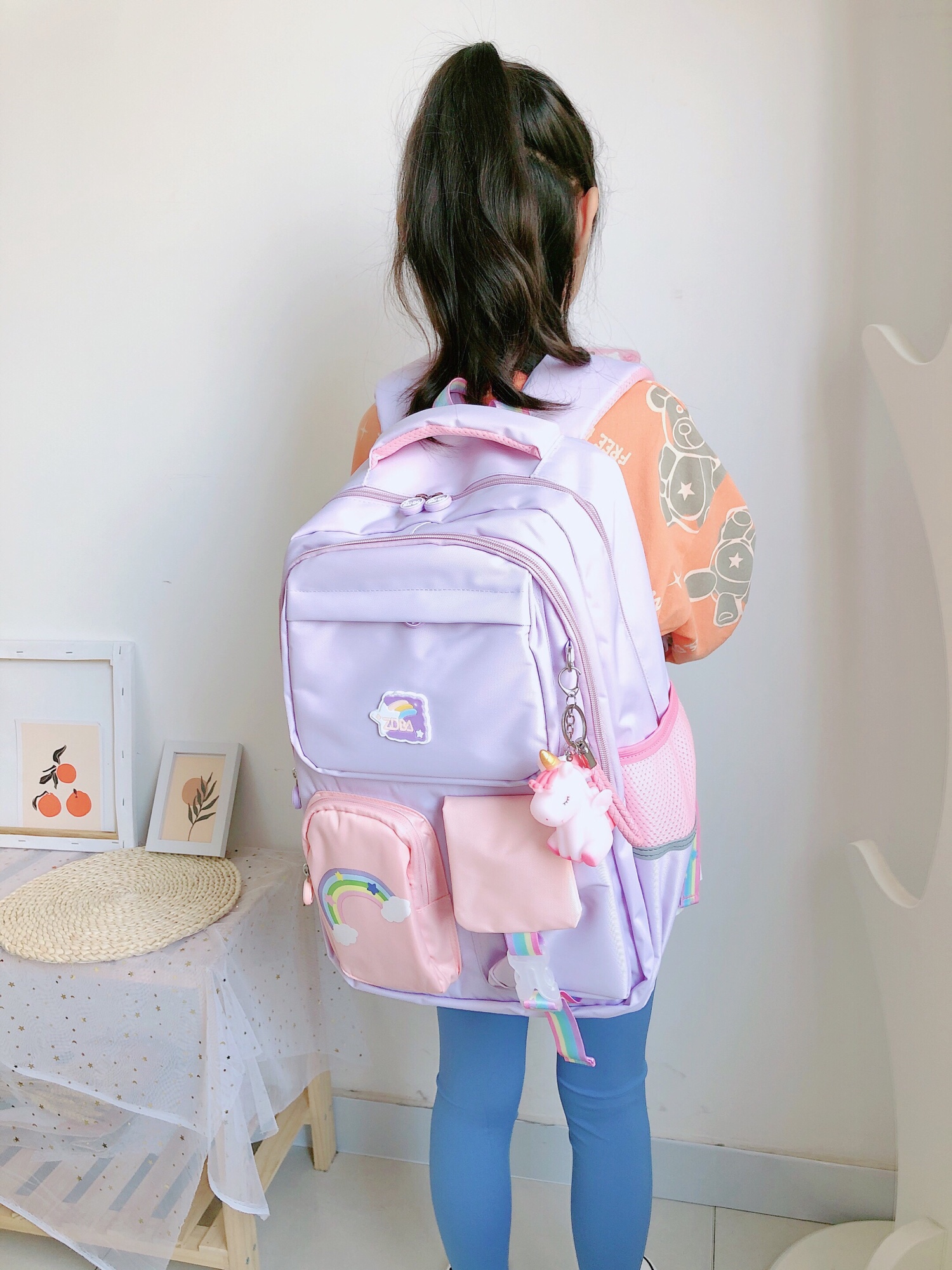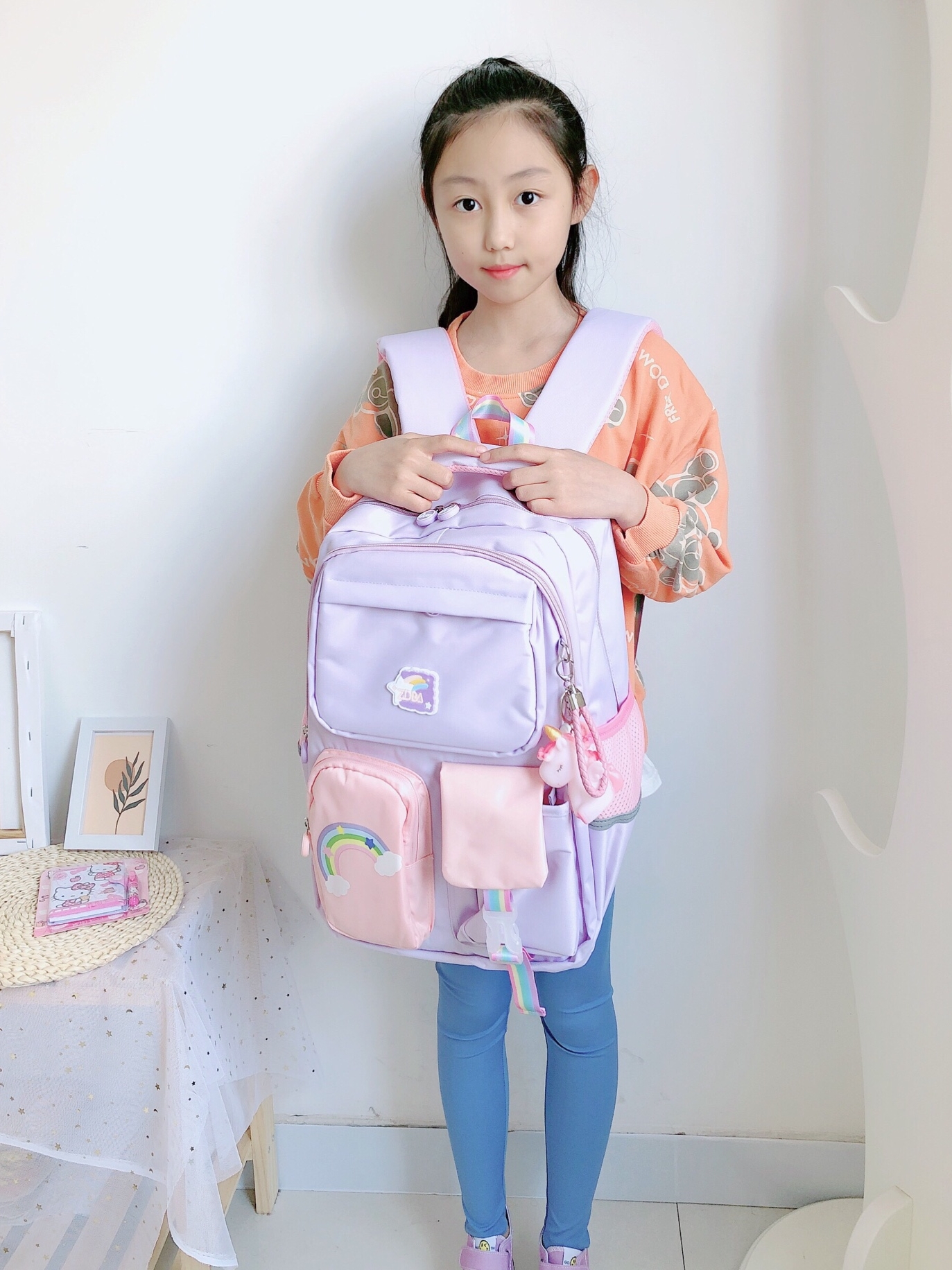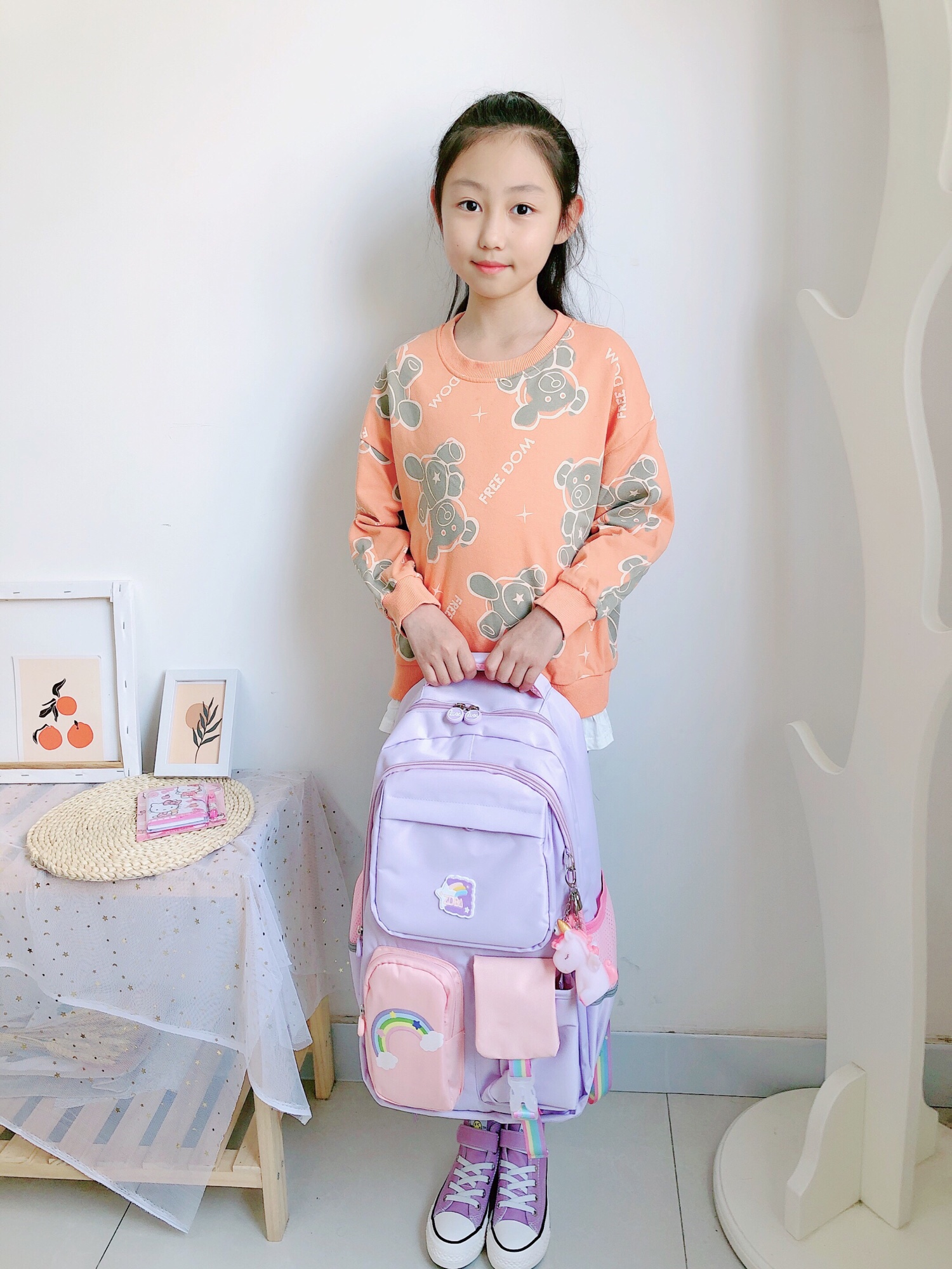 书包款式新颖可爱,粉色的也好喜欢,里面空间很大,分层设计也很棒,拉链也顺滑好拉,爱了。