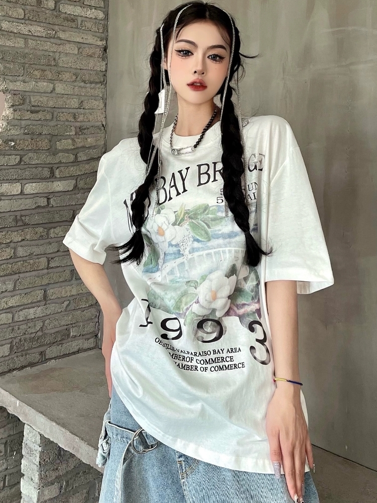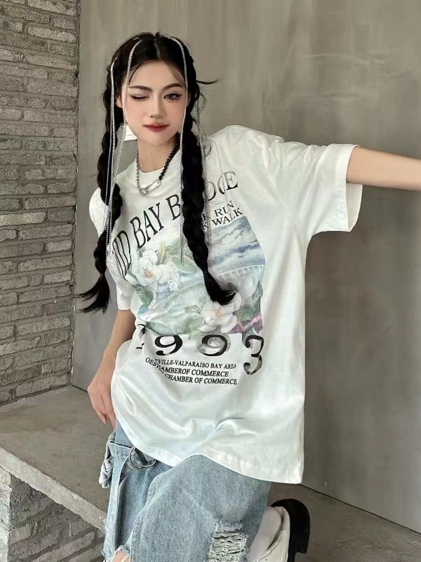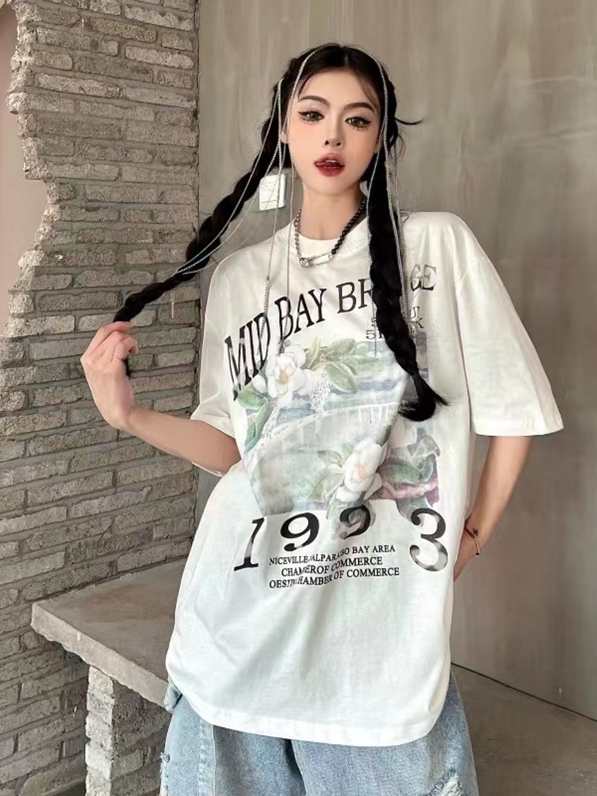 这款t恤是简约的风格,宽松的版型,时尚百搭,胸前的字母印花,很有个性,搭配牛仔裤或者短裤都很好看。